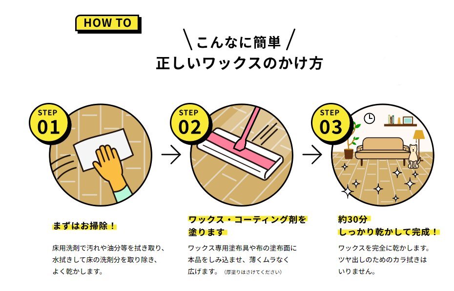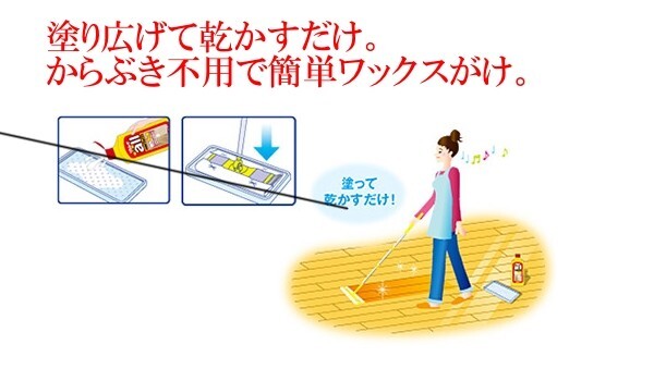 ●塗り拡げて乾かすだけ。からぶき不要で簡単ワックスがけ。