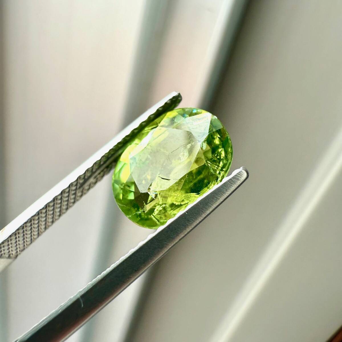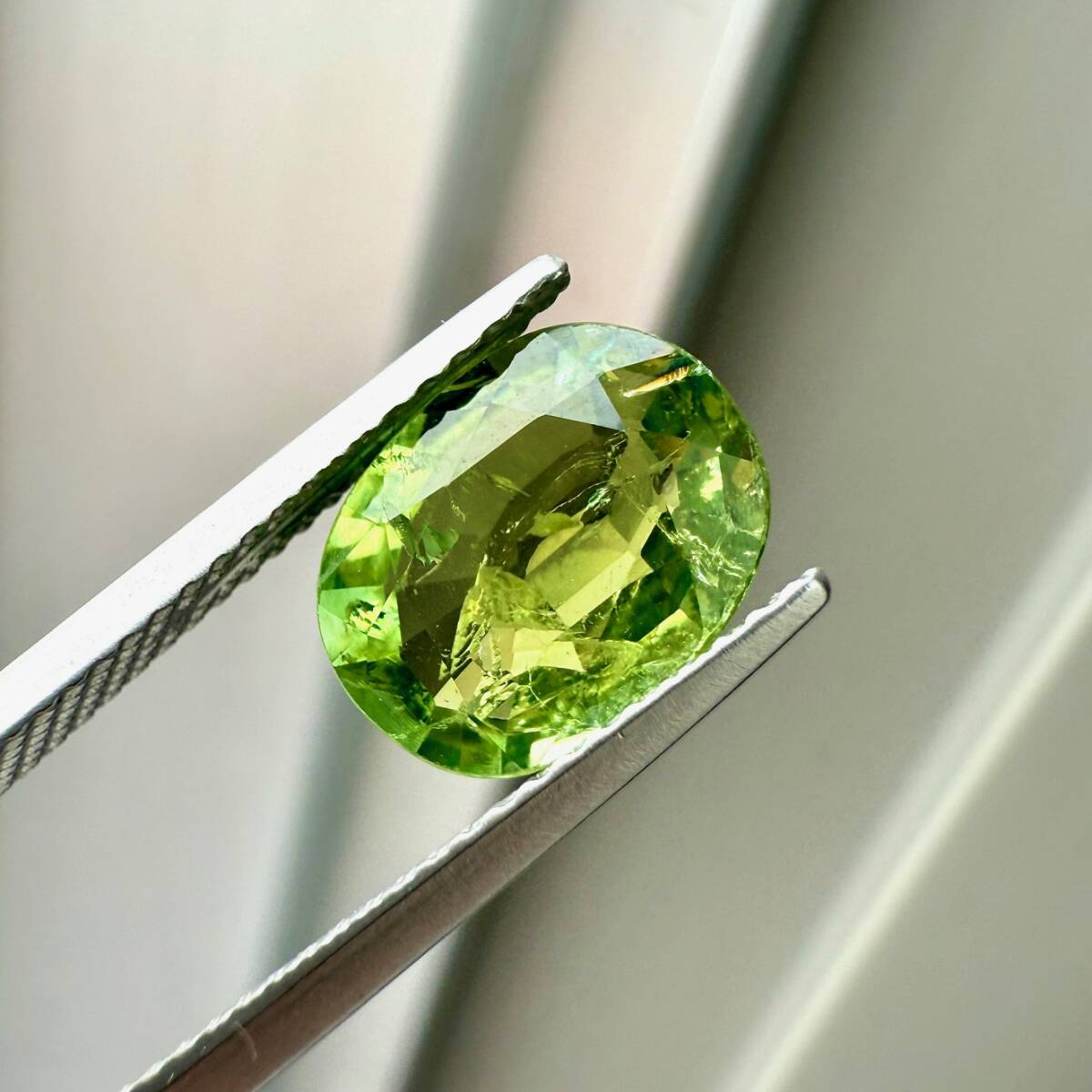 透明、黄緑色、オーバルカット