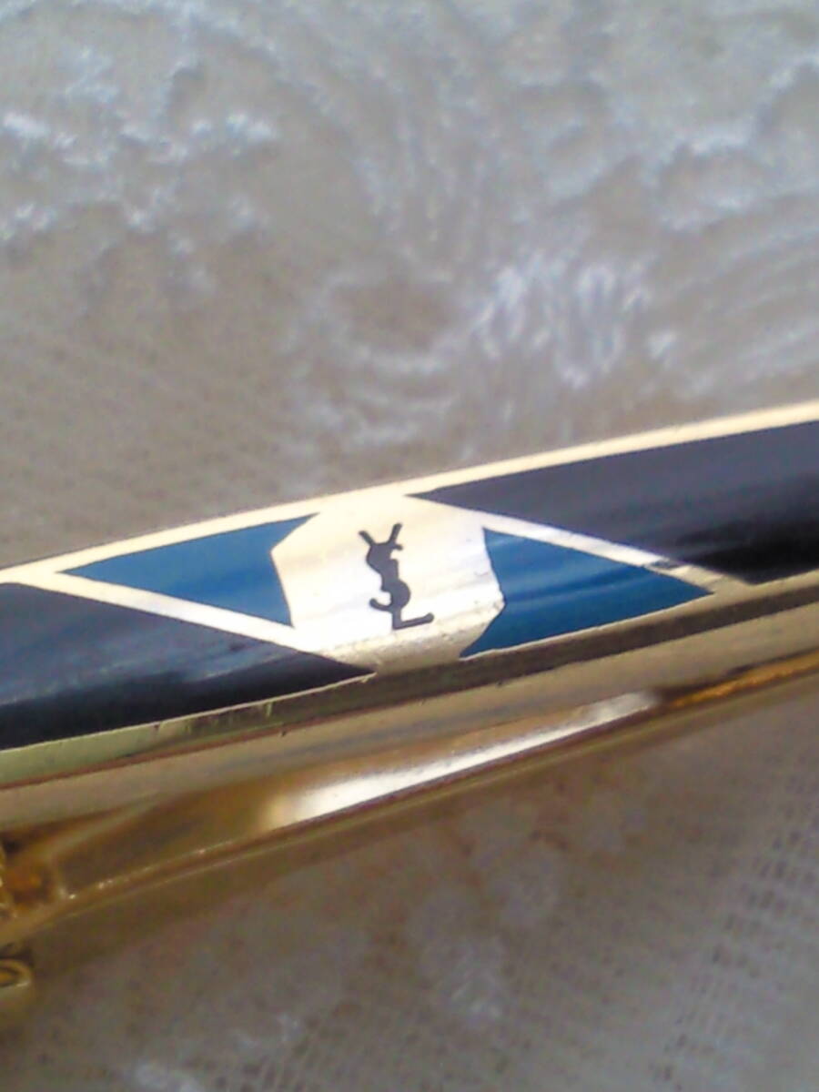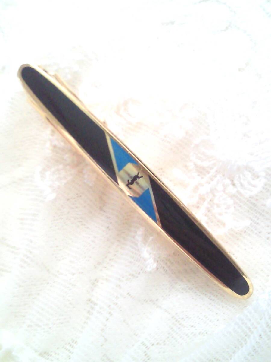 イヴ・サンローラン■ブランド品ネクタイピン■YSL■黒字にブルー金色♪年代物タイピン■ヴィンテージ品アンティークジュエリー■送料無料