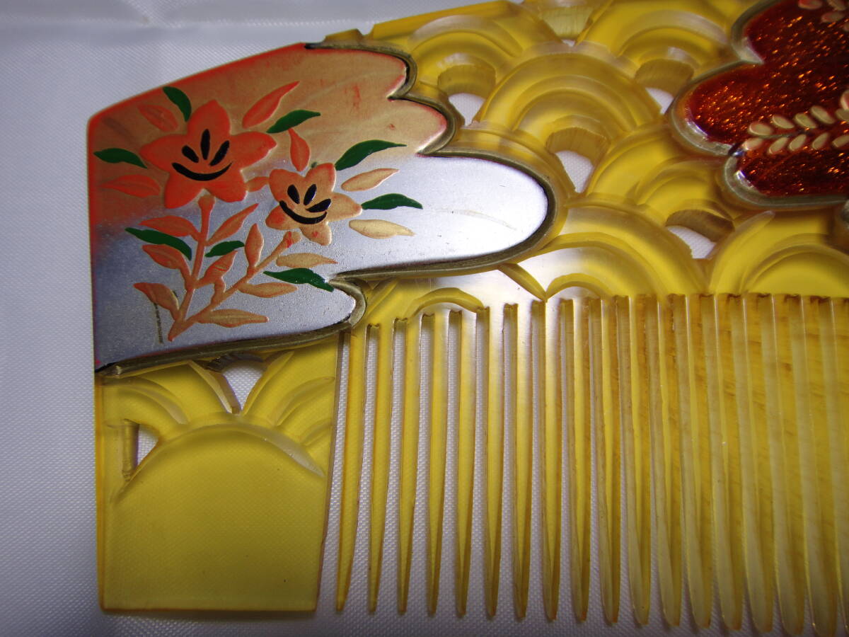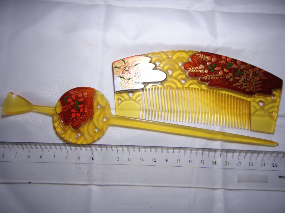 櫛 簪 くし かんざし 2点セット 蒔絵 アンティーク レトロ ヴィンテージ 和装小物 D471