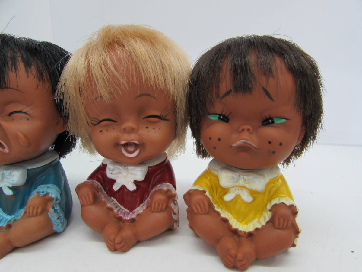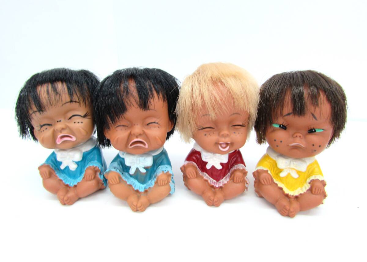 | 昭和レトロ 当時物 赤ちゃん クロンボ ソフビ 人形 泣き顔 笑い顔 怒り顔 日本製 4点おまとめセット全長:約39㎝ |