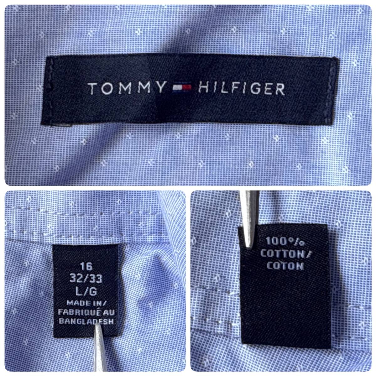 ☆送料無料☆ TOMMY HILFIGER トミーヒルフィガー USA直輸入 古着 長袖 胸ポケット付き シャツ メンズ L ブルー トップス 中古 即決