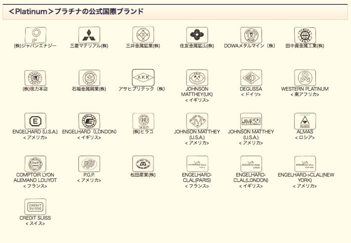 中でも日本の代表ブランドといえば、田中貴金属工業、徳力本店、三菱マテリアル、日本マテリアル、住友金属鉱山などです。