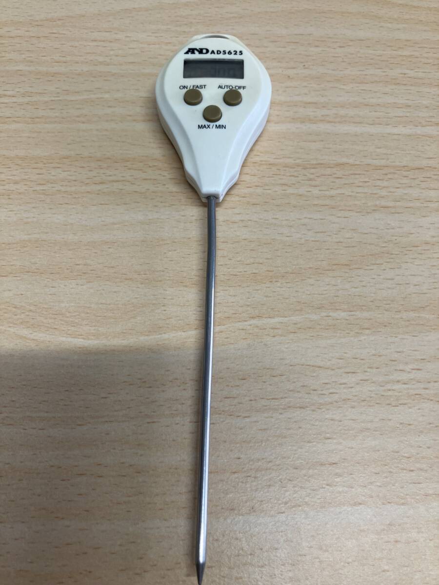 プローブ先端φ2.2mmの極細温度センサーを使用、中心温度測定におすすめ。防水仕様(IPX7/JIS保護等級7相当)で水洗いがしやすく衛生的。温度表示間隔は約1秒で、すばやい温度変化を表示。電池の消耗を防ぐオートパワーオフ機能付き(機能OFF可能)。食品、調理、理化学、設備機器、農業など幅広い分野で役立つ。