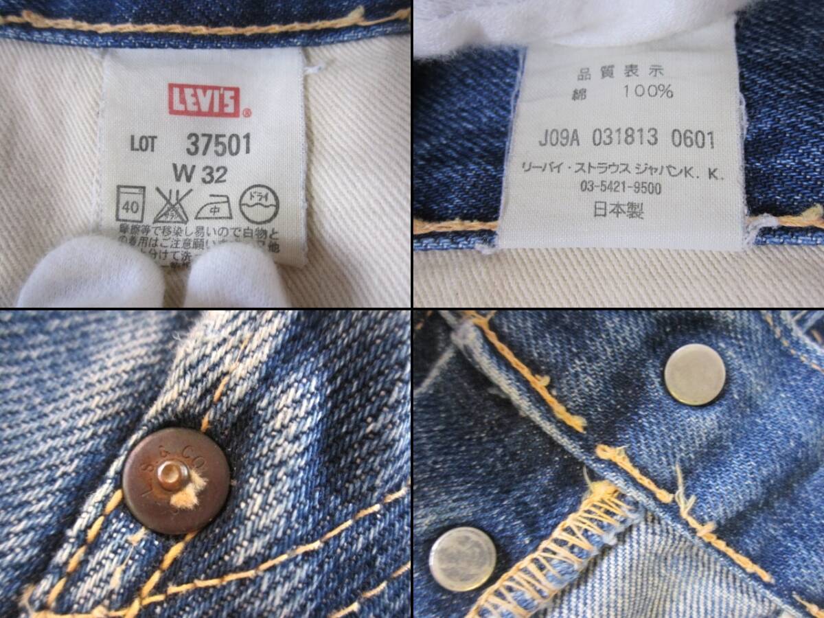 LVC LEVI’S 37501 日本製 ビンテージ復刻 W32 片面BIGE 赤耳 セルビッジ ボタンフライ 股リベット 2001年製 【中古】YN7003IKED【送料無料】