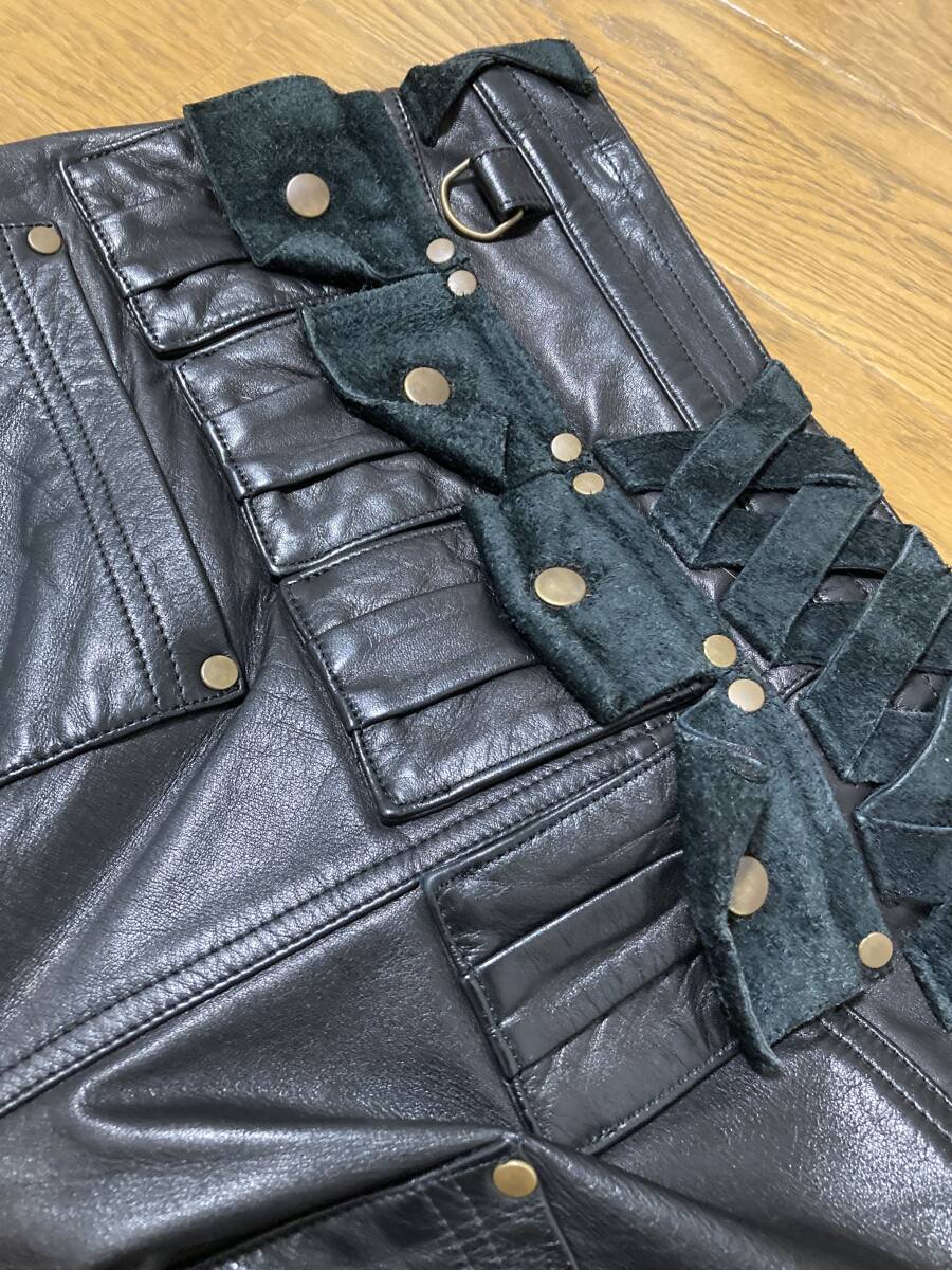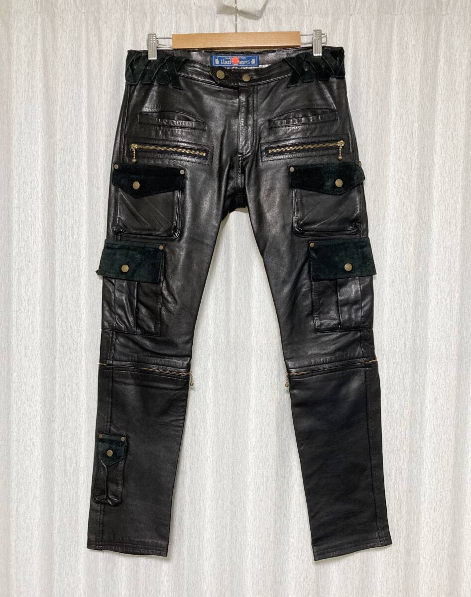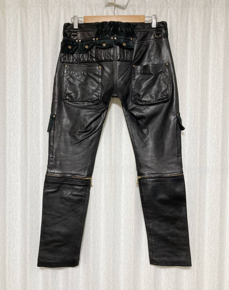 初期☆[BLACKMEANS] 11AW 2WAY ZIP MILITARY CARGO LEATHER PANTS マルチジップ カーゴポケット レザーパンツ 3 牛革 ブラックミーンズ
