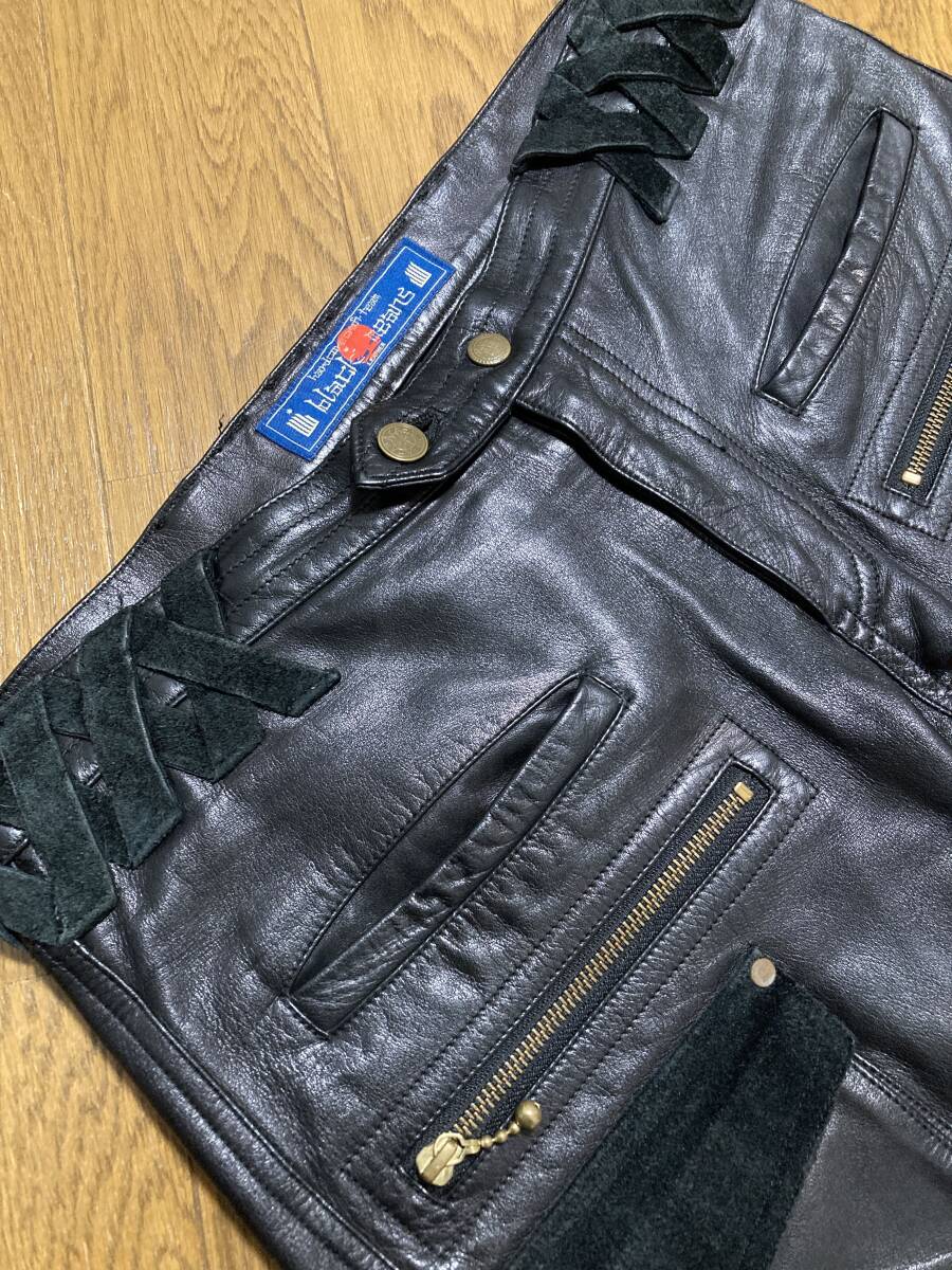 初期☆[BLACKMEANS] 11AW 2WAY ZIP MILITARY CARGO LEATHER PANTS マルチジップ カーゴポケット レザーパンツ 3 牛革 ブラック ブラックミーンズ