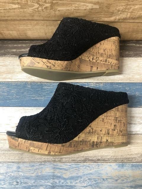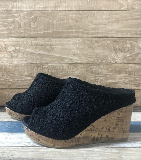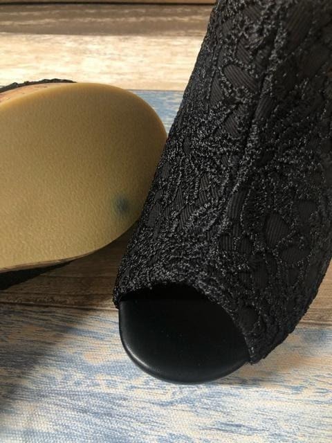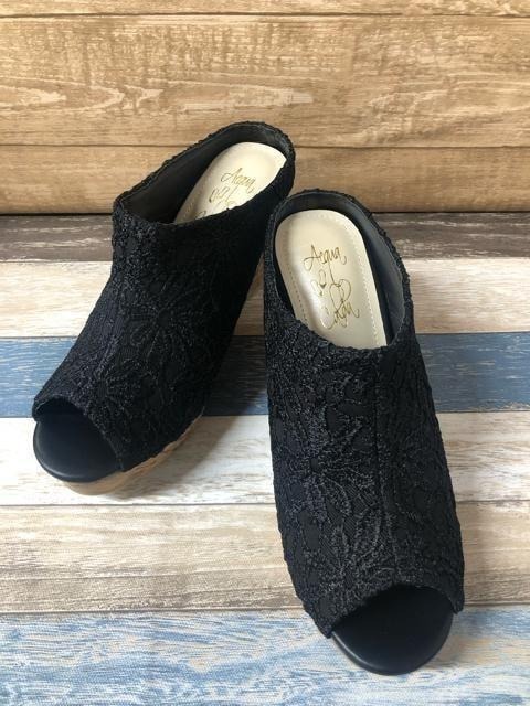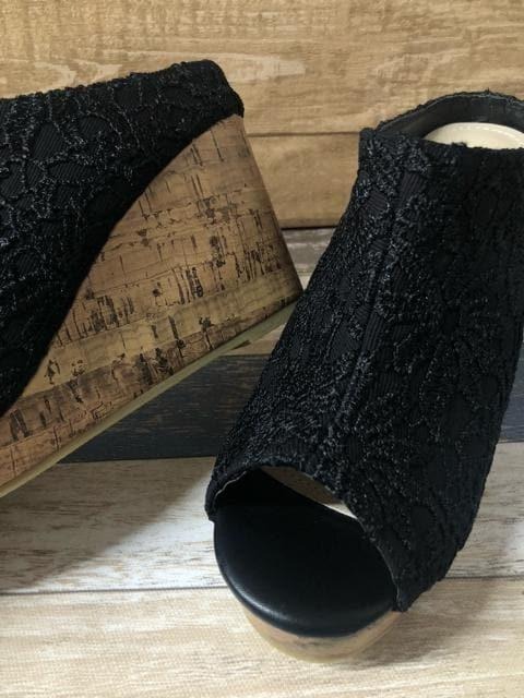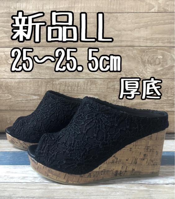 新品☆LL25~25.5cm幅広4E♪黒レースウェッジサンダル♪厚底☆g495