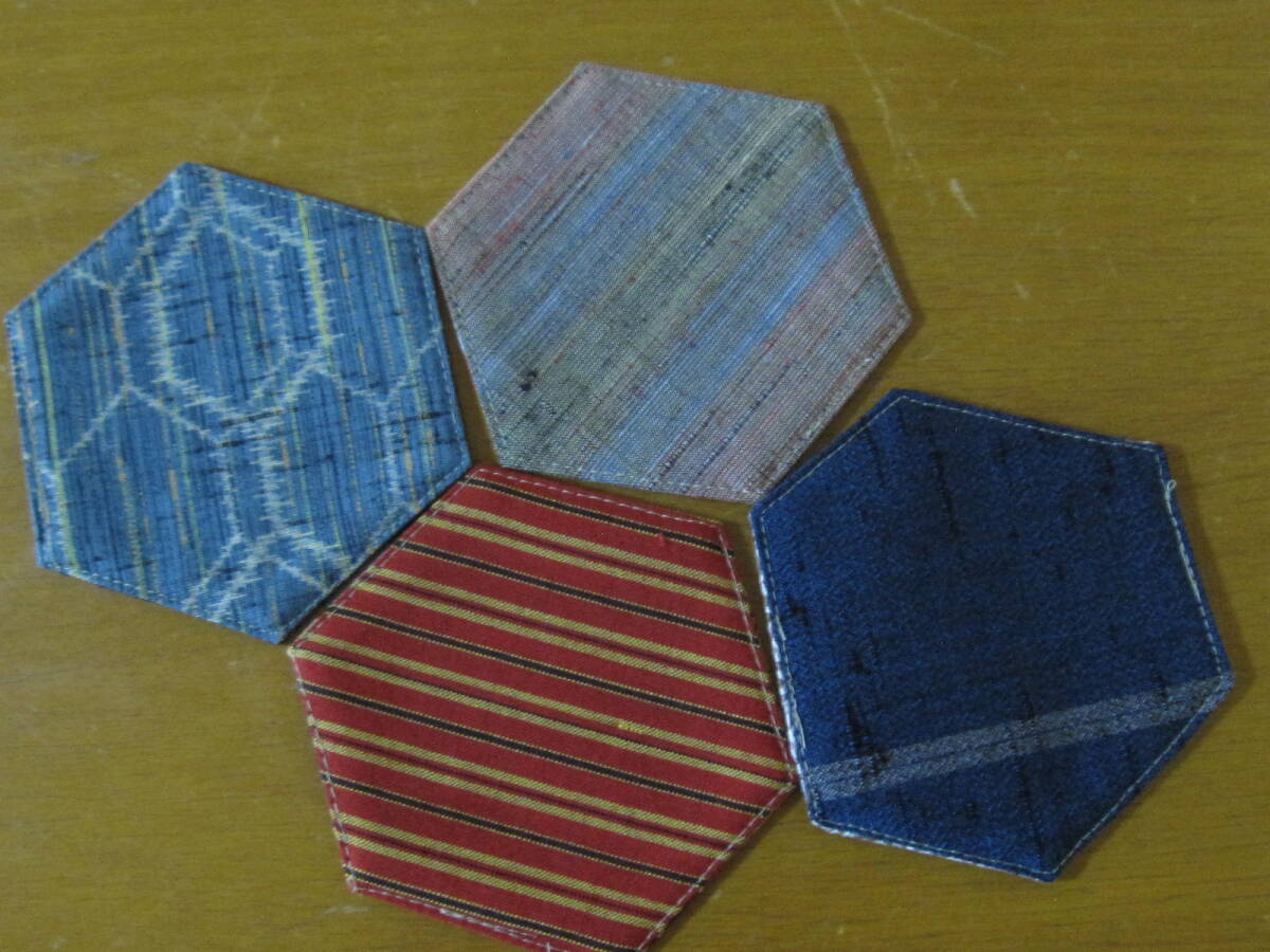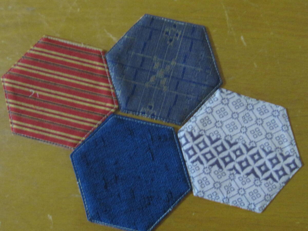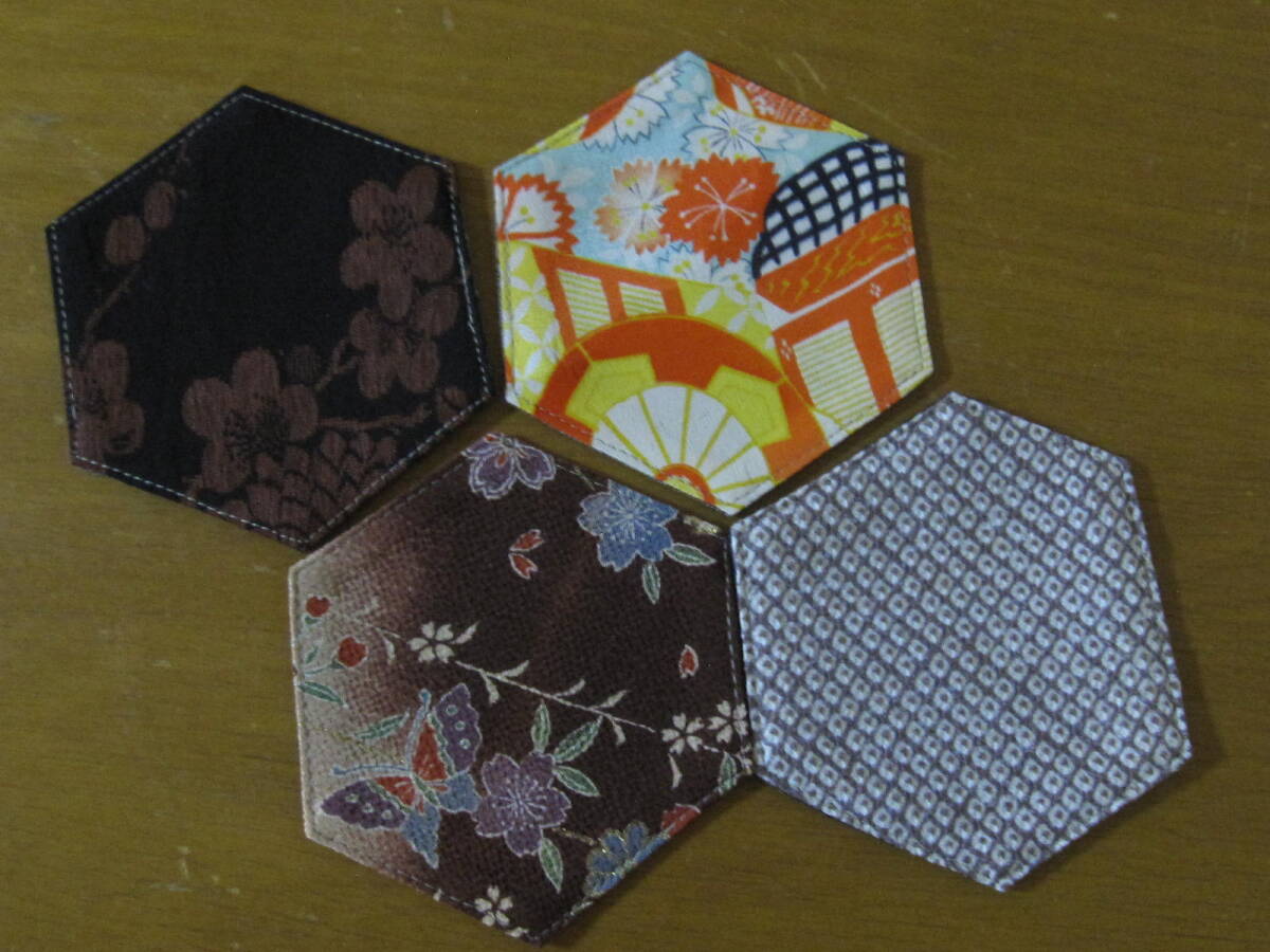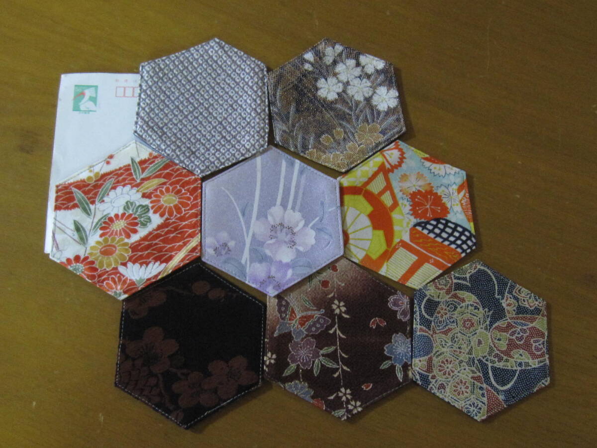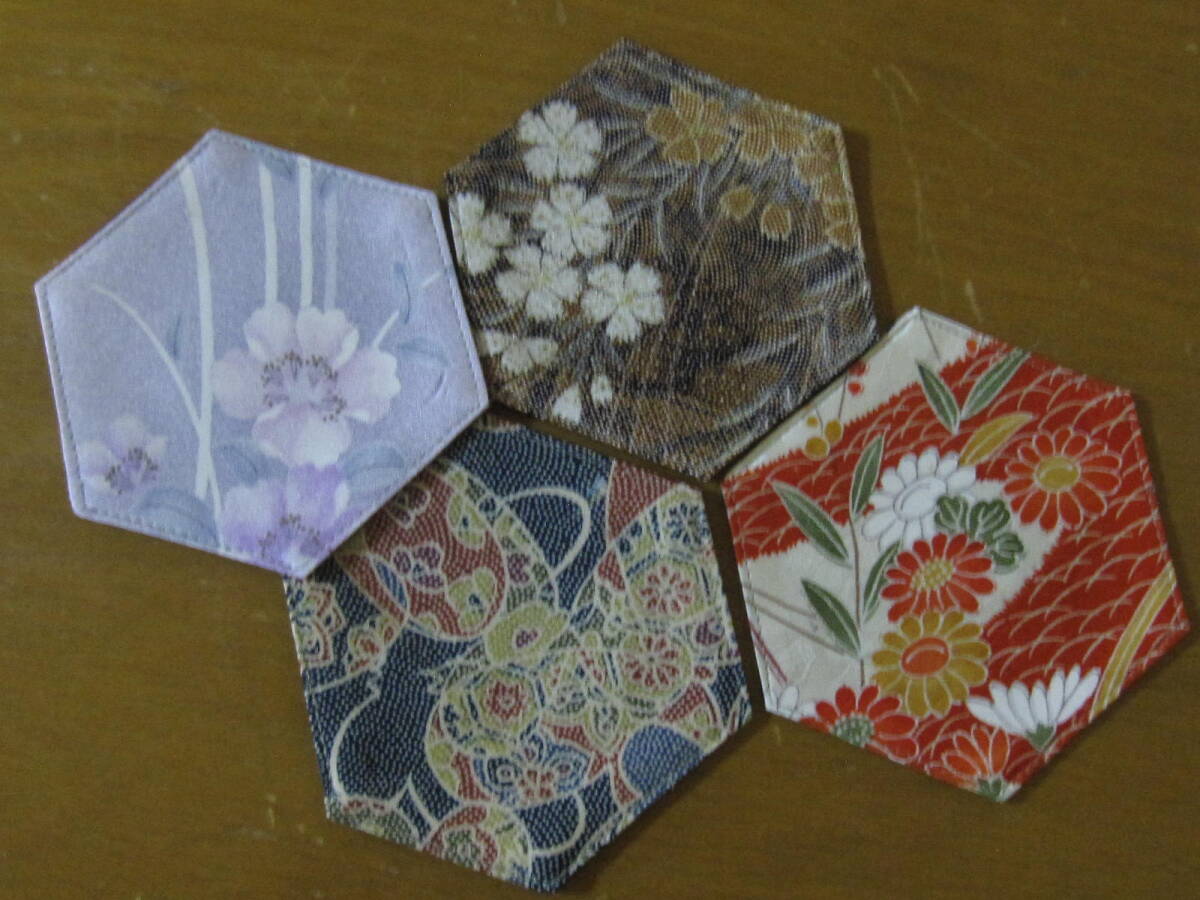 手作り 六角 コースター 着物リメイク 8枚 リバーシブル 花 蝶 波 模様 絞絹 レトロ 兼用 セット まとめて ハンドメイド 可愛い お洒落 2