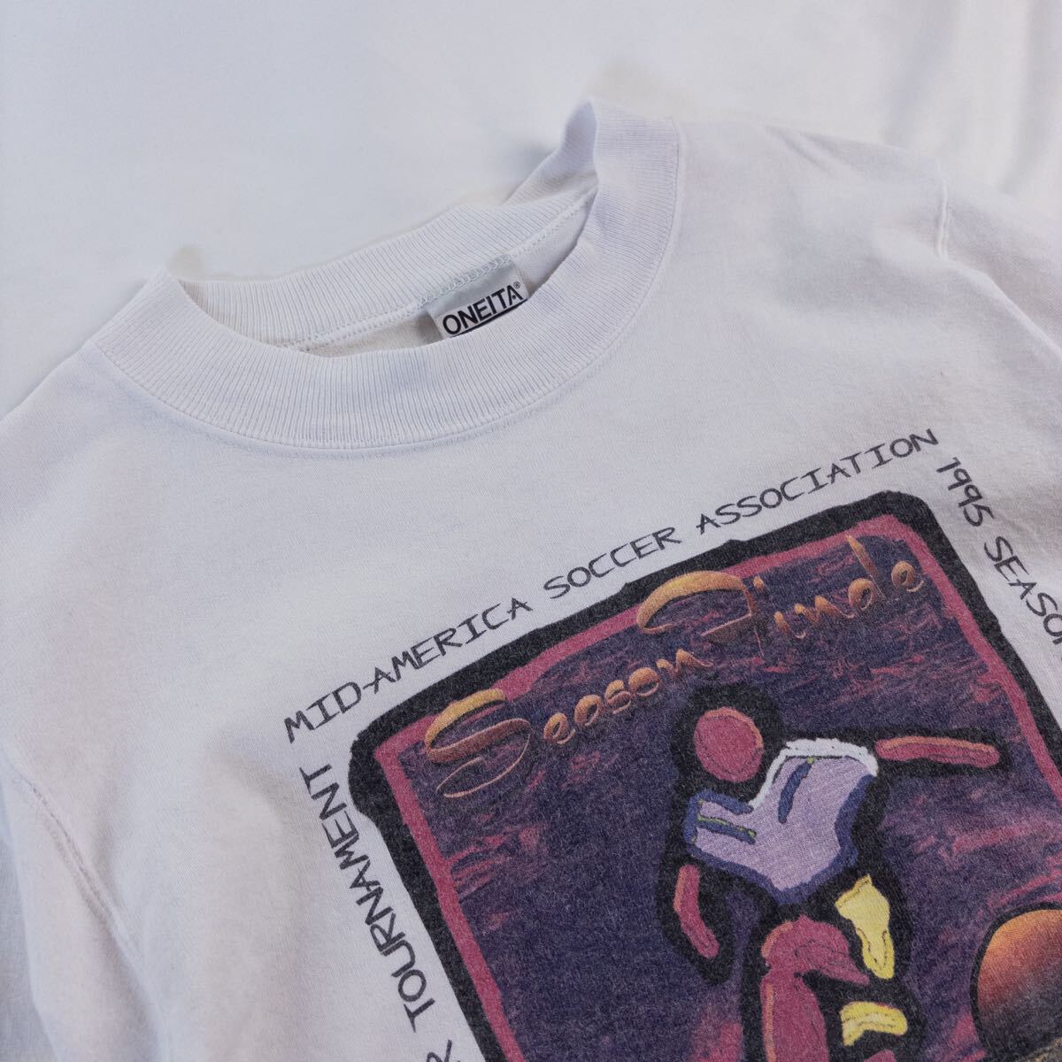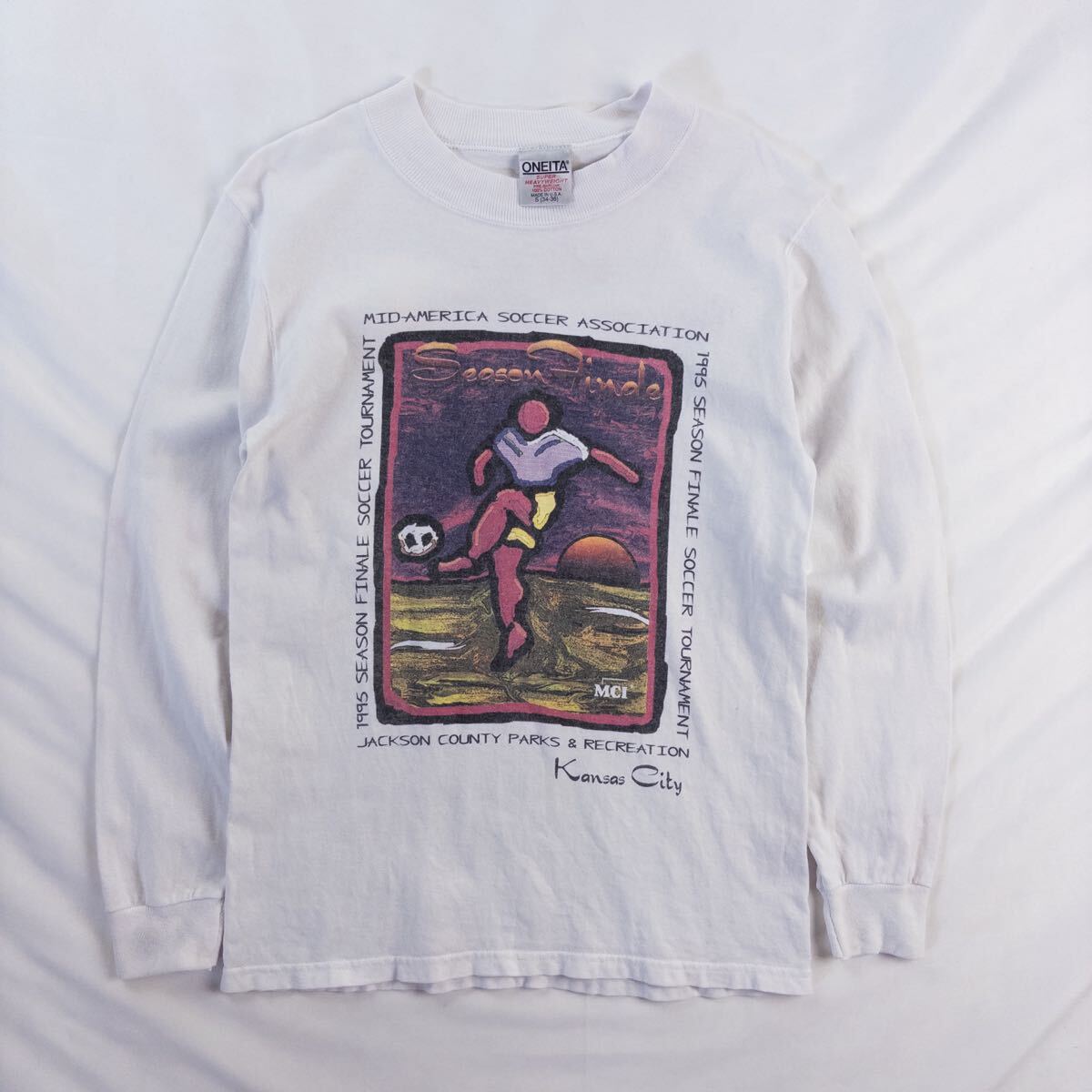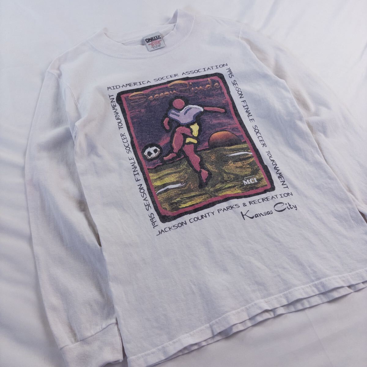 US Vintage アメリカ製 90s ONEITA コットン100% プリント Lotto サッカー イベント トーナメント MCI カンザス レトロ アート ホワイト 白 ロンT