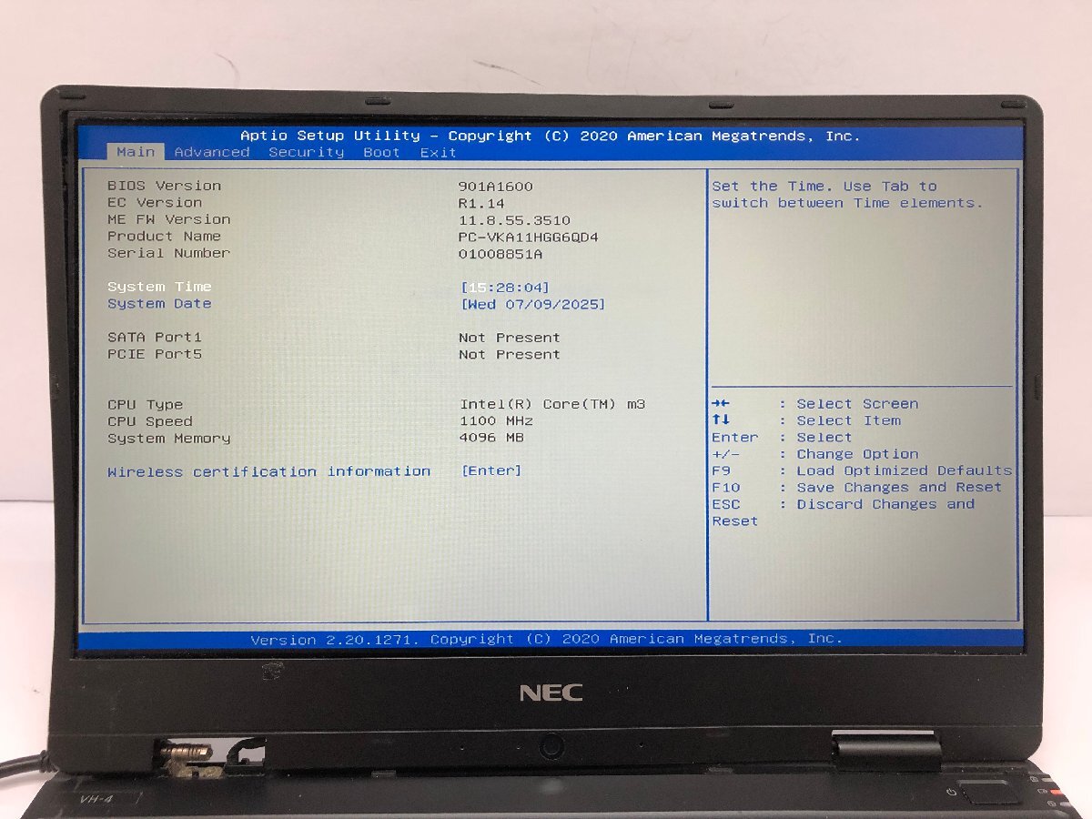 ジャンク/ NEC PC-VKA11HGG6QD4 Intel Core m3-8100Y メモリ4.1GB ストレージ無し 【K17787】
