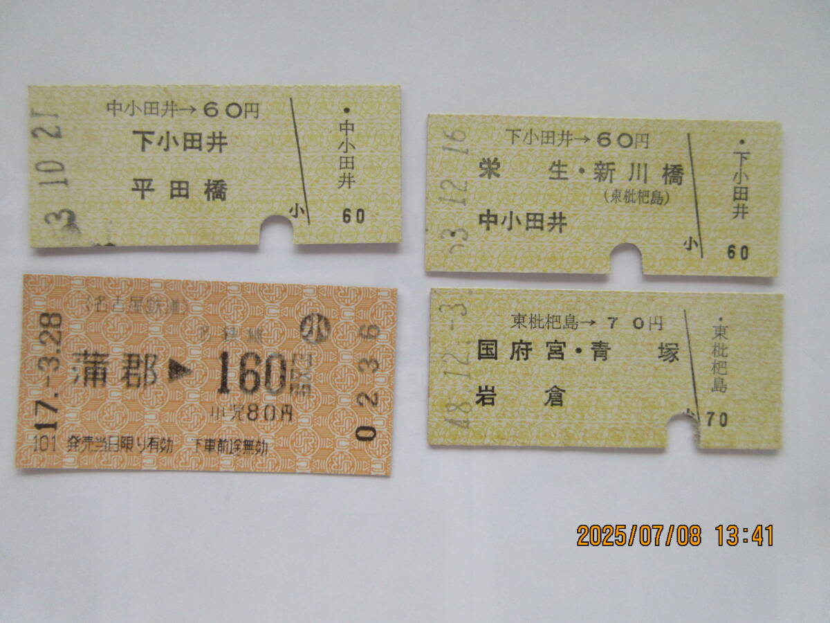蒲郡のみ非硬券 発行日が他の3枚と比べて近年