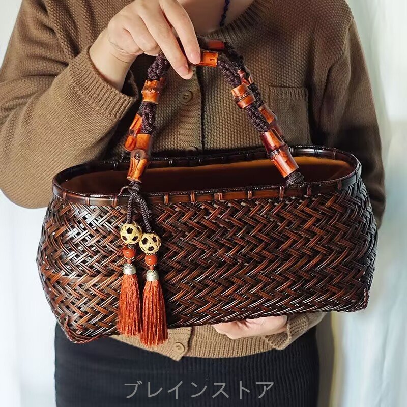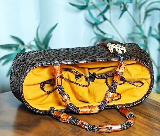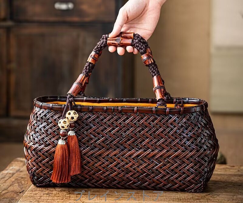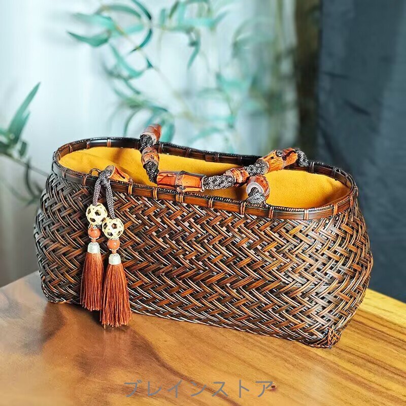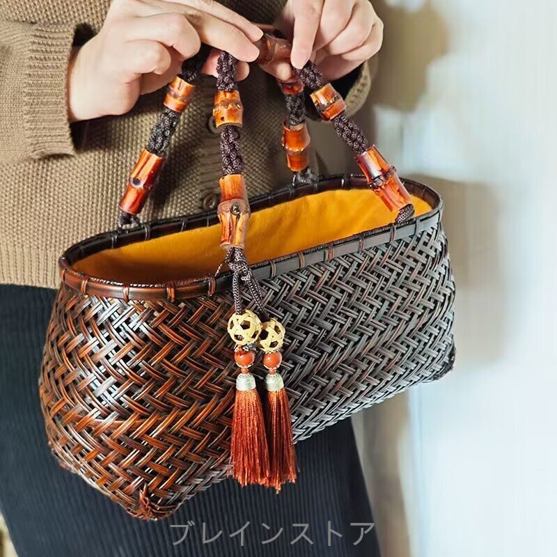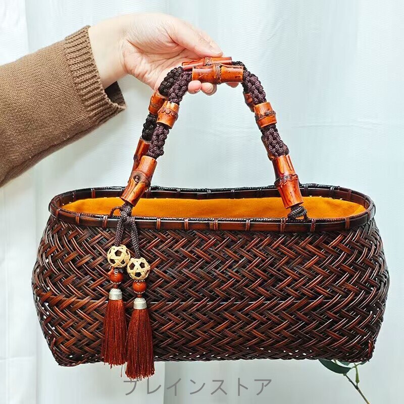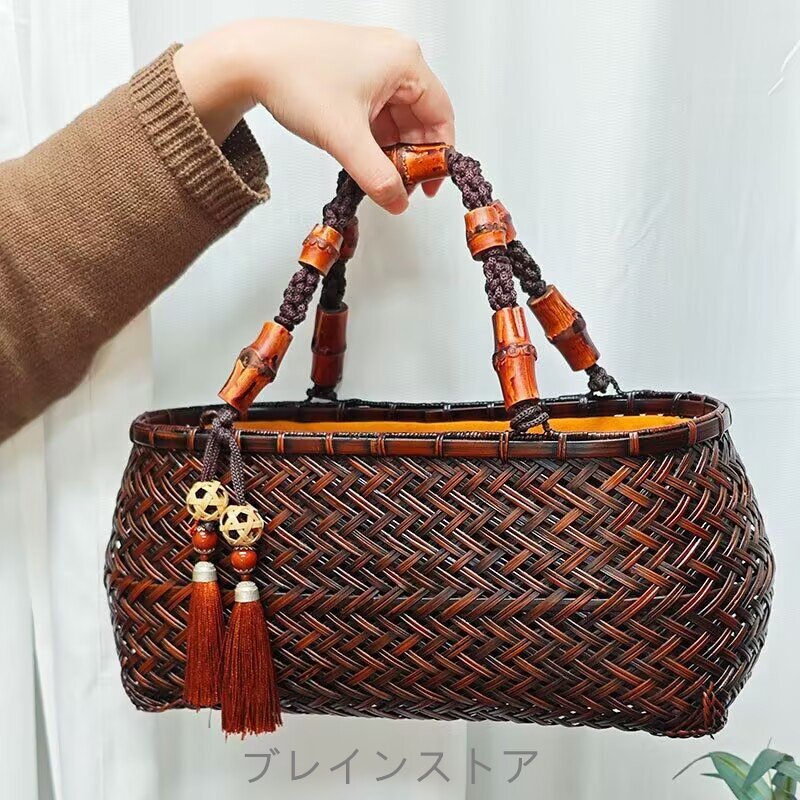 人気美品★可愛い新品 自然竹編み上げカゴバック  手作り藤バックバスケット ナチュラル買い物カゴ 収納バッグ