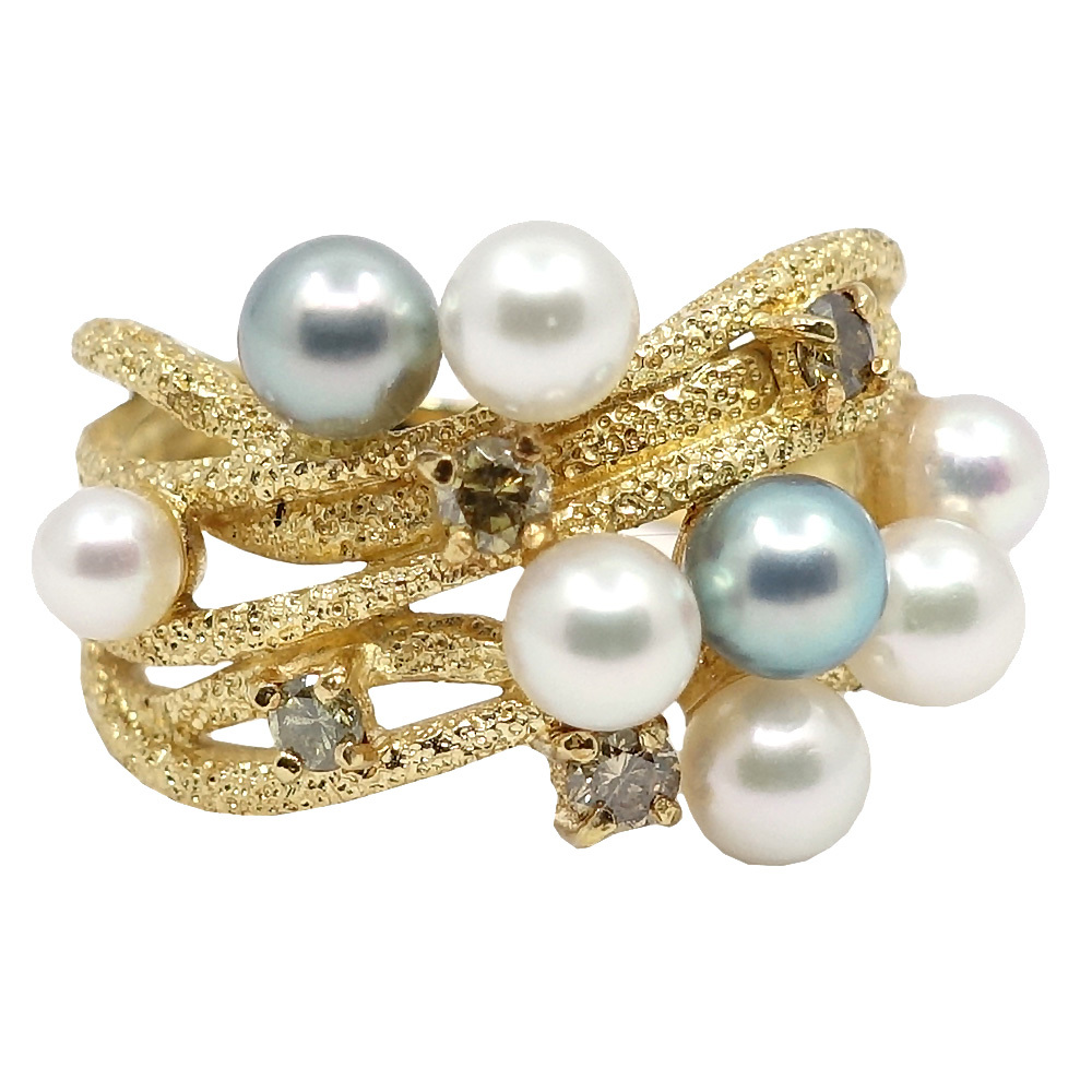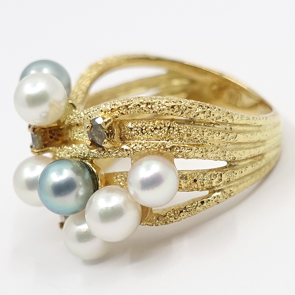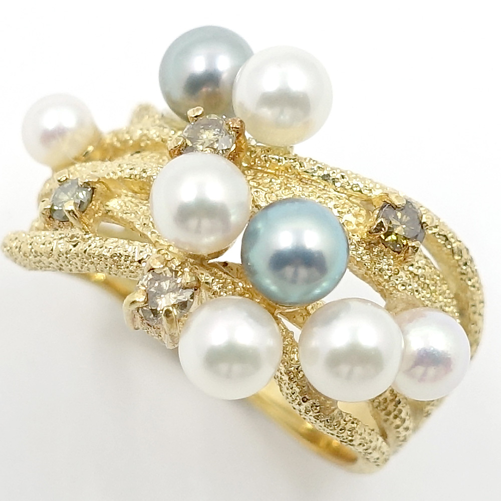 【栄】ジュエリー 指輪 パール 真珠 サファイア 約9号 カラーストーン K18YG 女性 約5.6g アクセサリー 本体のみ