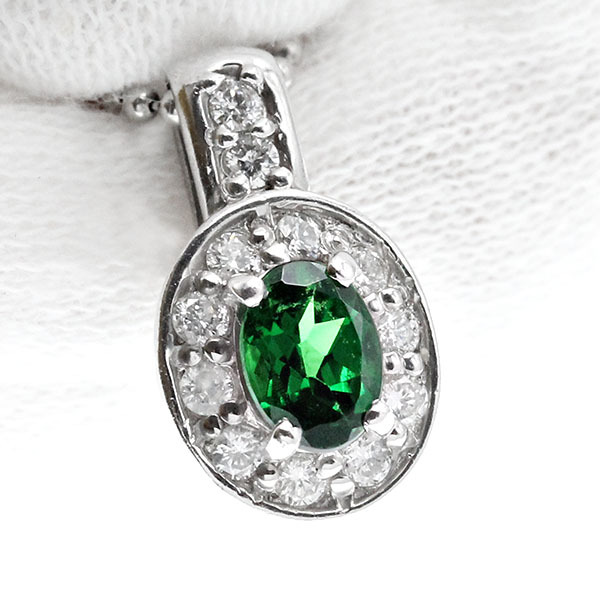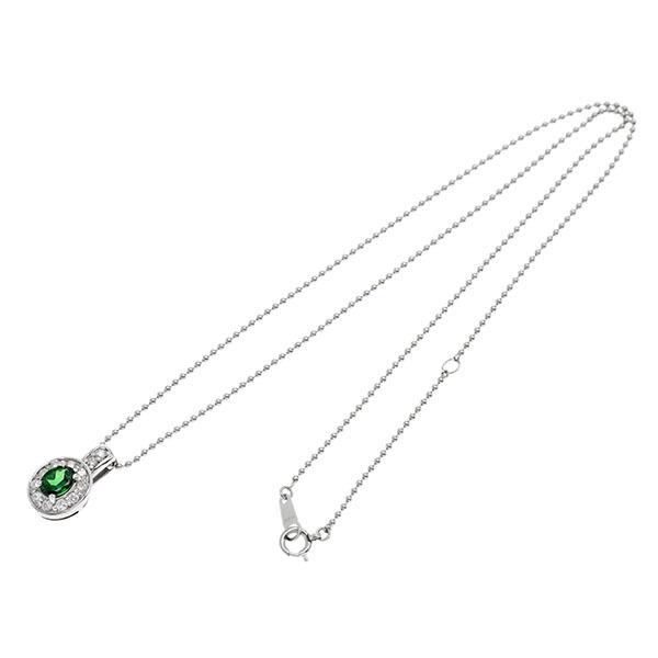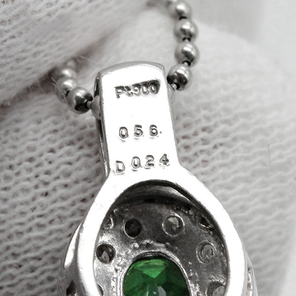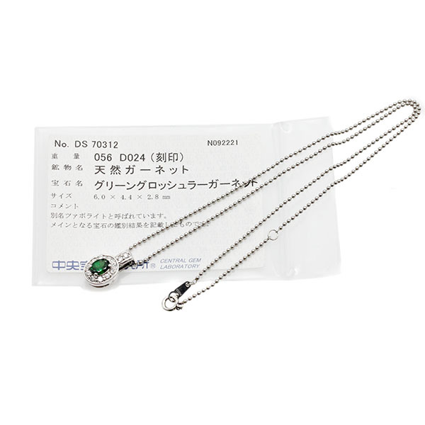 プラチナ グリーングロッシュラーガーネット ダイヤモンド ネックレス 36.5cm/40.5cm GG0.56ct D0.24ct Pt900 取り巻き ジュエリー 女性