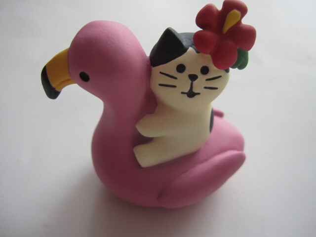 新品 デコレ コンコンブル 南の国のまったりアイランド ぷかぷかフラミンゴ子猫 ピンクフラミンゴ フィギュア インテリア雑貨