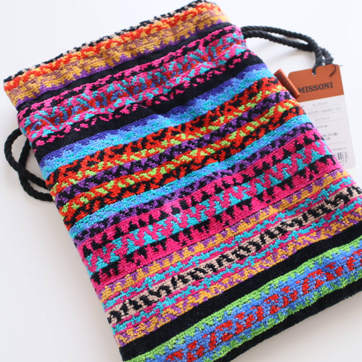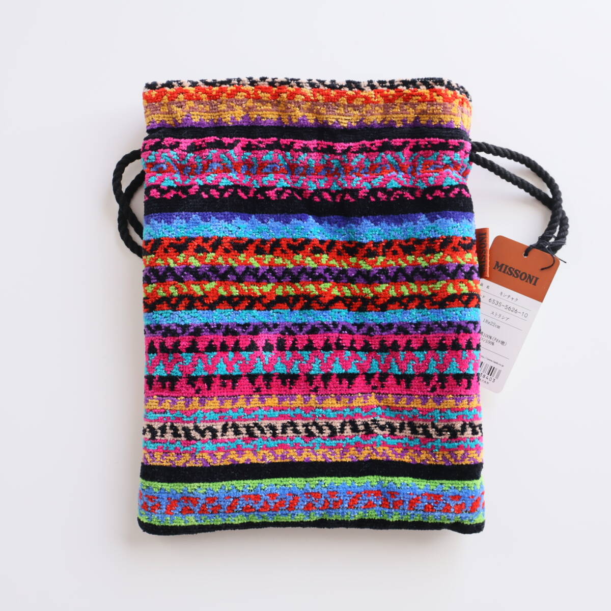 ご覧いただきまして誠にありがとうございます。 未使用 MISSONI ミッソーニ 巾着 です。 サイズ 約18cm×約22cm 素材 綿100%(裏地:ナイロン100%) ※保管による僅かな傷や汚れ、シワ等はご了承お願いいたします。 | ||