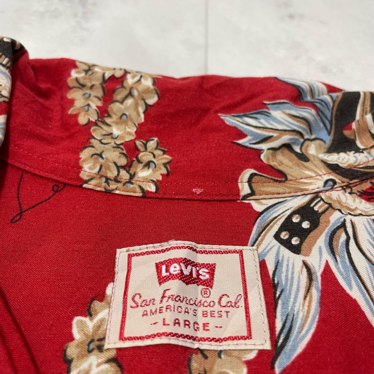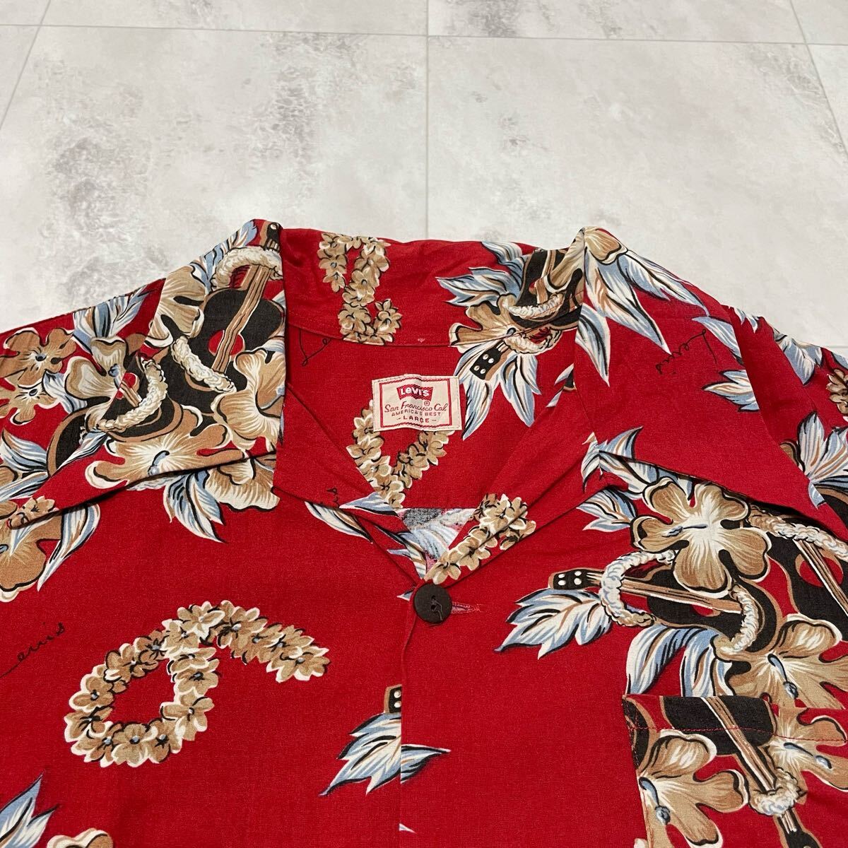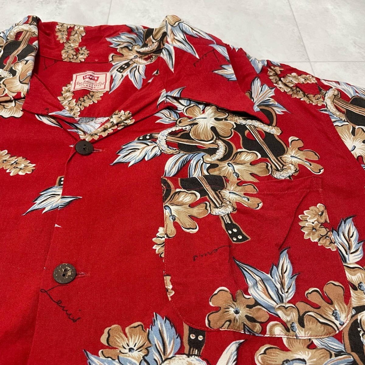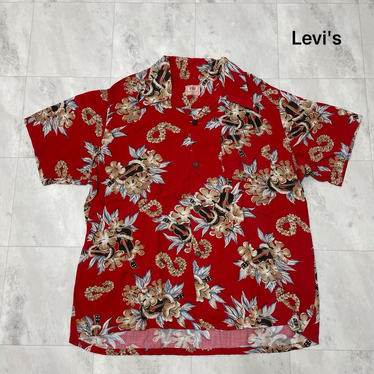 Levi's リーバイス アロハシャツ 半袖 オープンカラーシャツ ヴィンテージ ハイビスカス レッド レーヨン L 玉SS3973