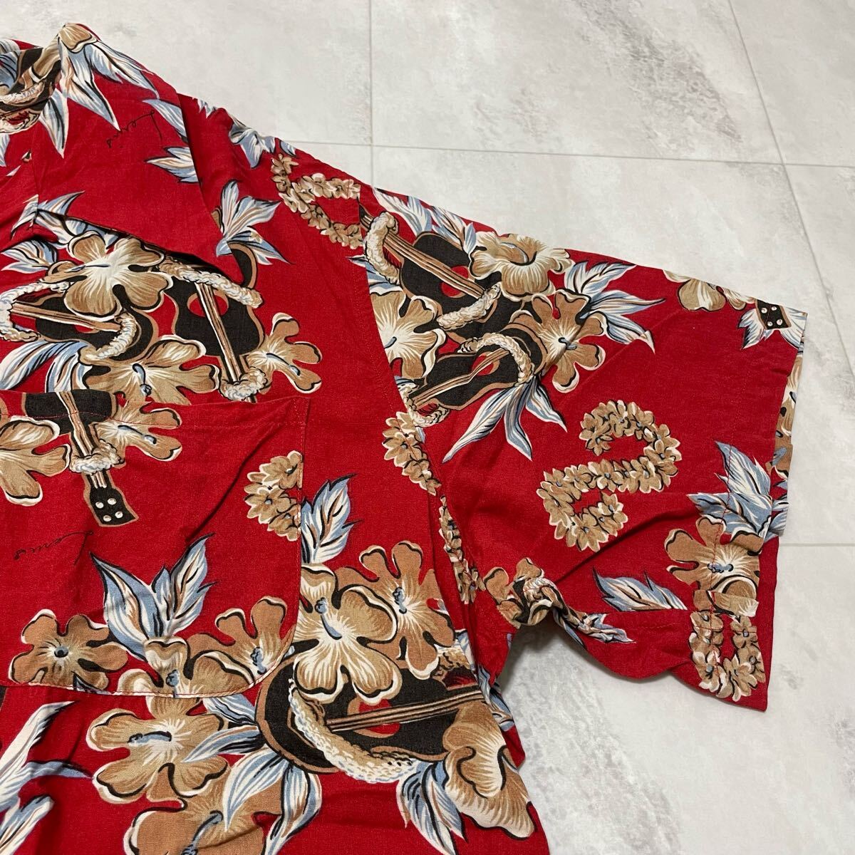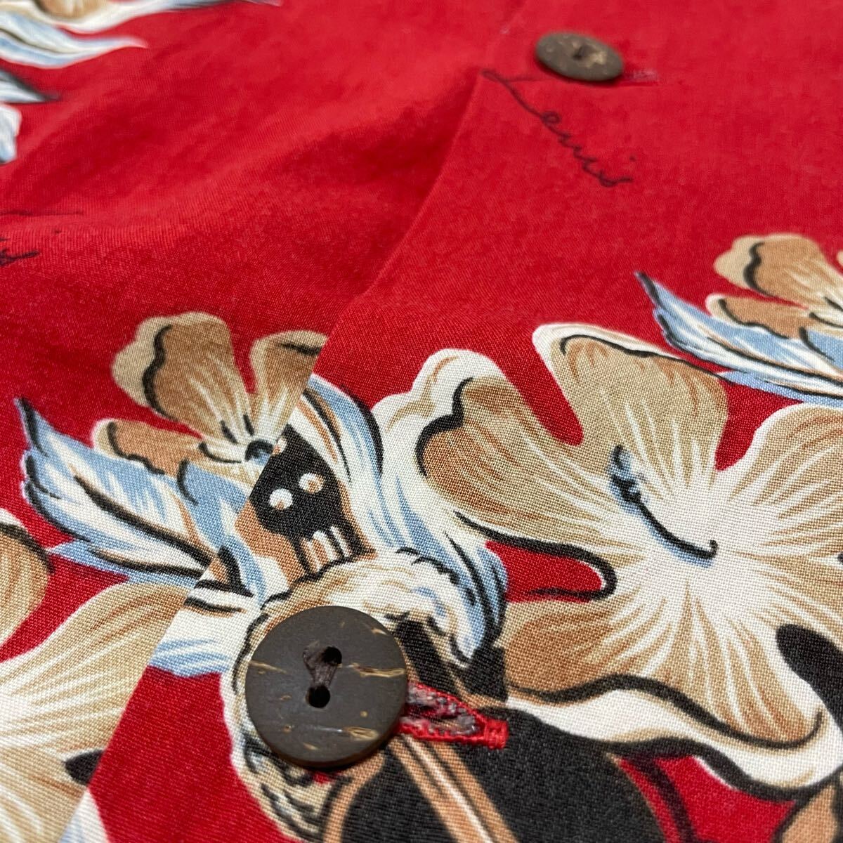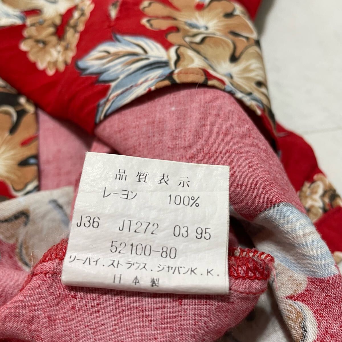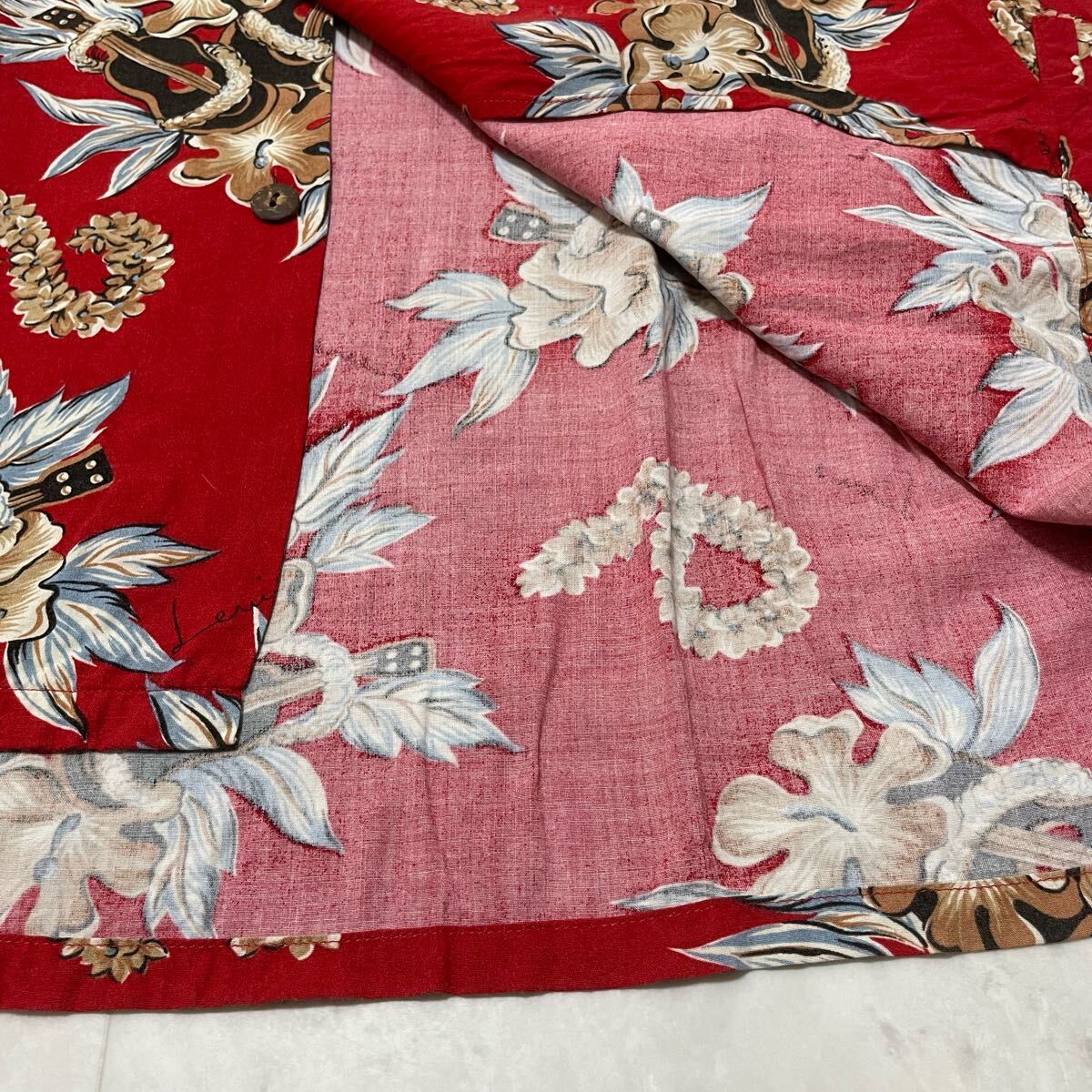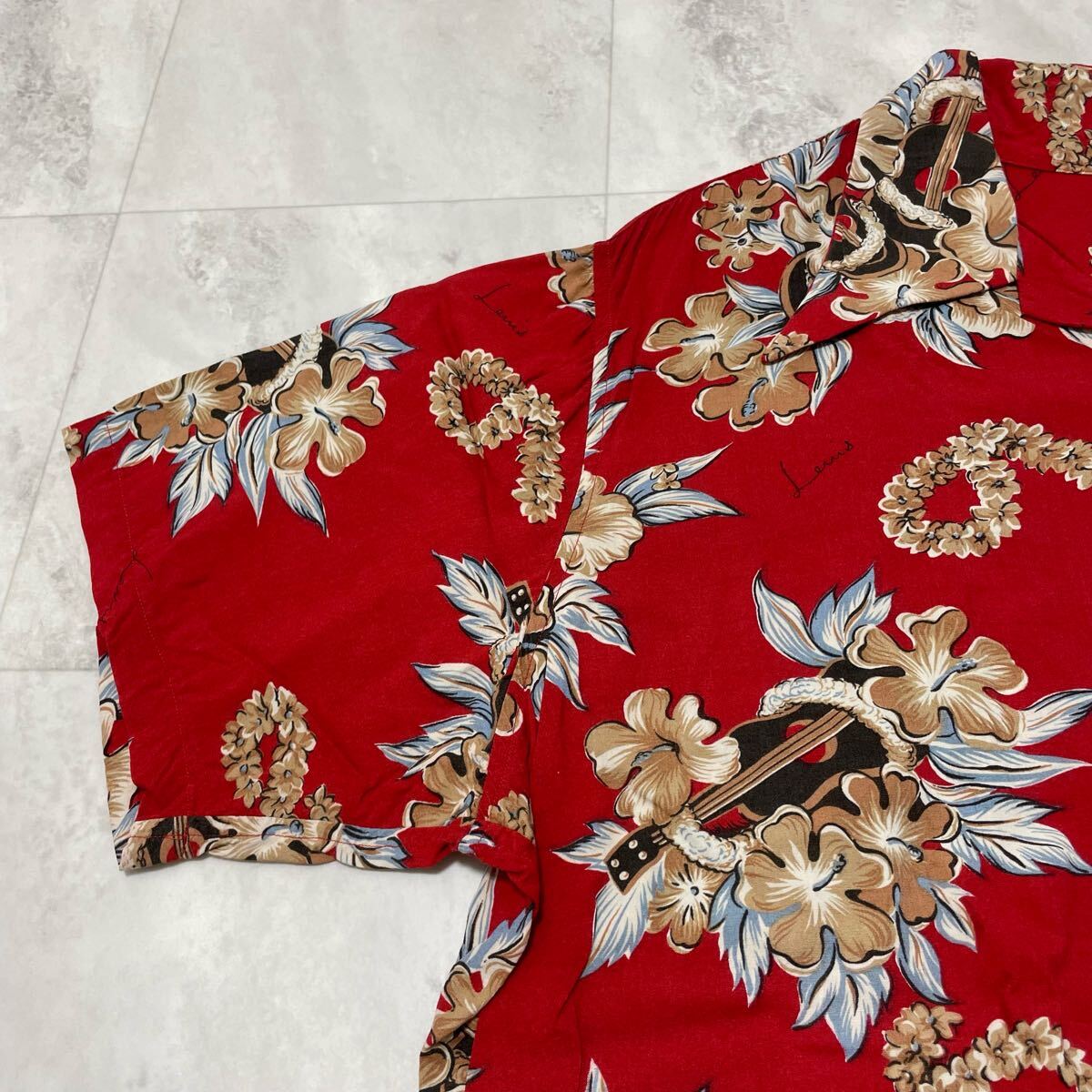 Levi's リーバイス アロハシャツ 半袖 オープンカラーシャツ ヴィンテージ ハイビスカス レッド レーヨン L 玉SS3973