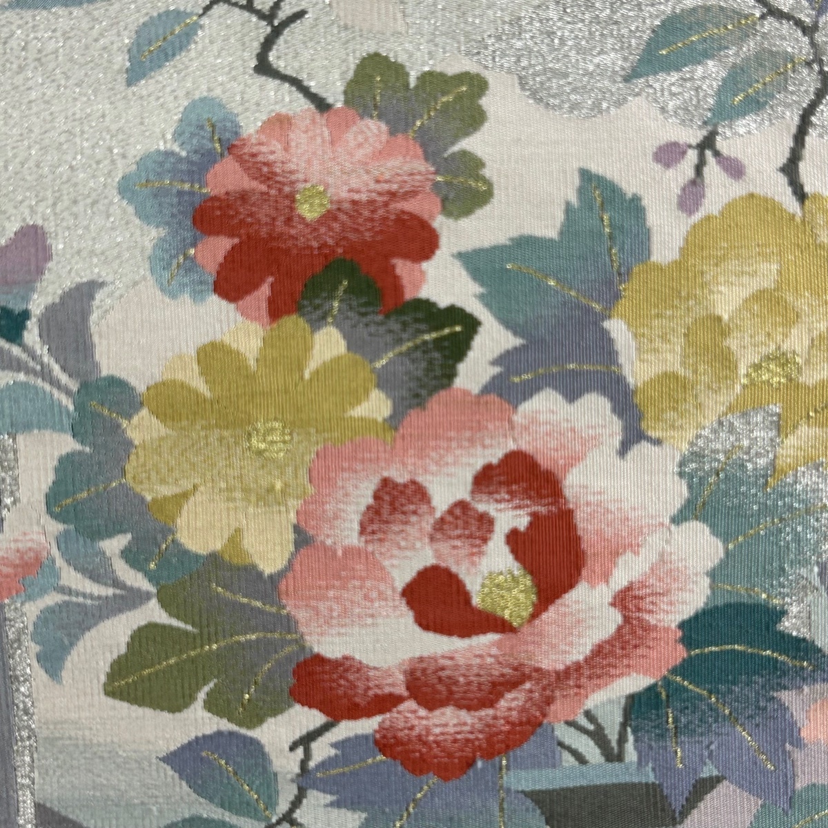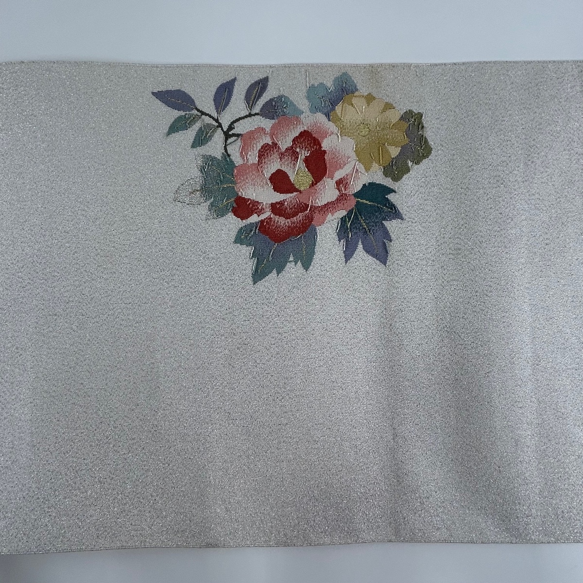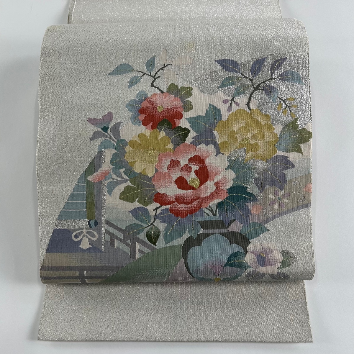 | 名古屋帯 秀品 八寸名古屋帯 松葉仕立て 花器 金銀糸 銀色 正絹 【中古】 |