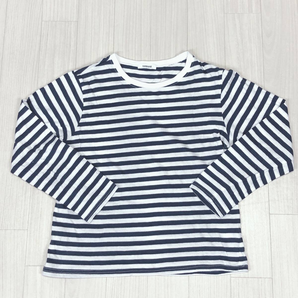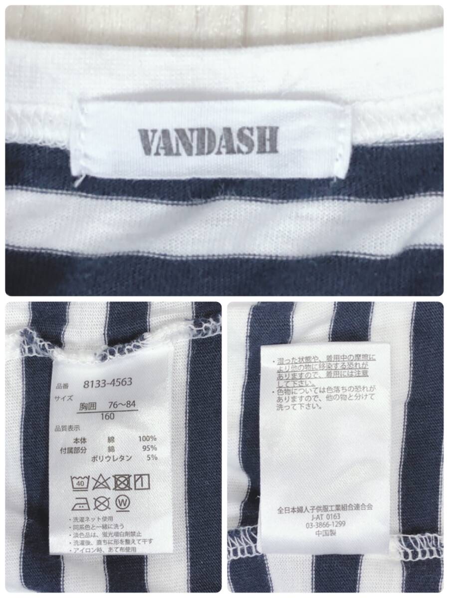 Y2076 VANDASH キッズ トップス Tシャツ 長袖 丸首 薄手 伸縮性 160 ブラック 黒 ホワイト 白 ボーダー 綿100% カジュアル シンプル 春秋