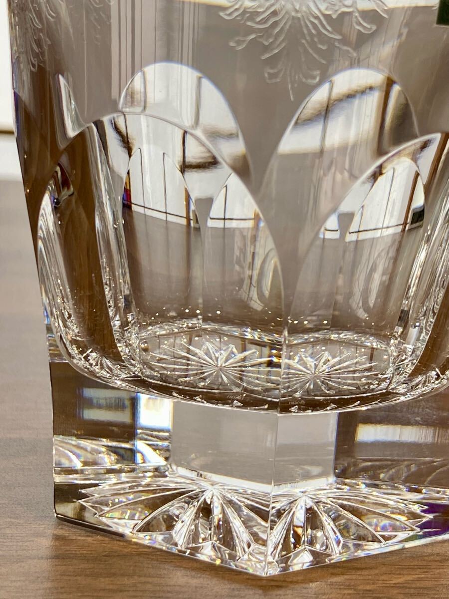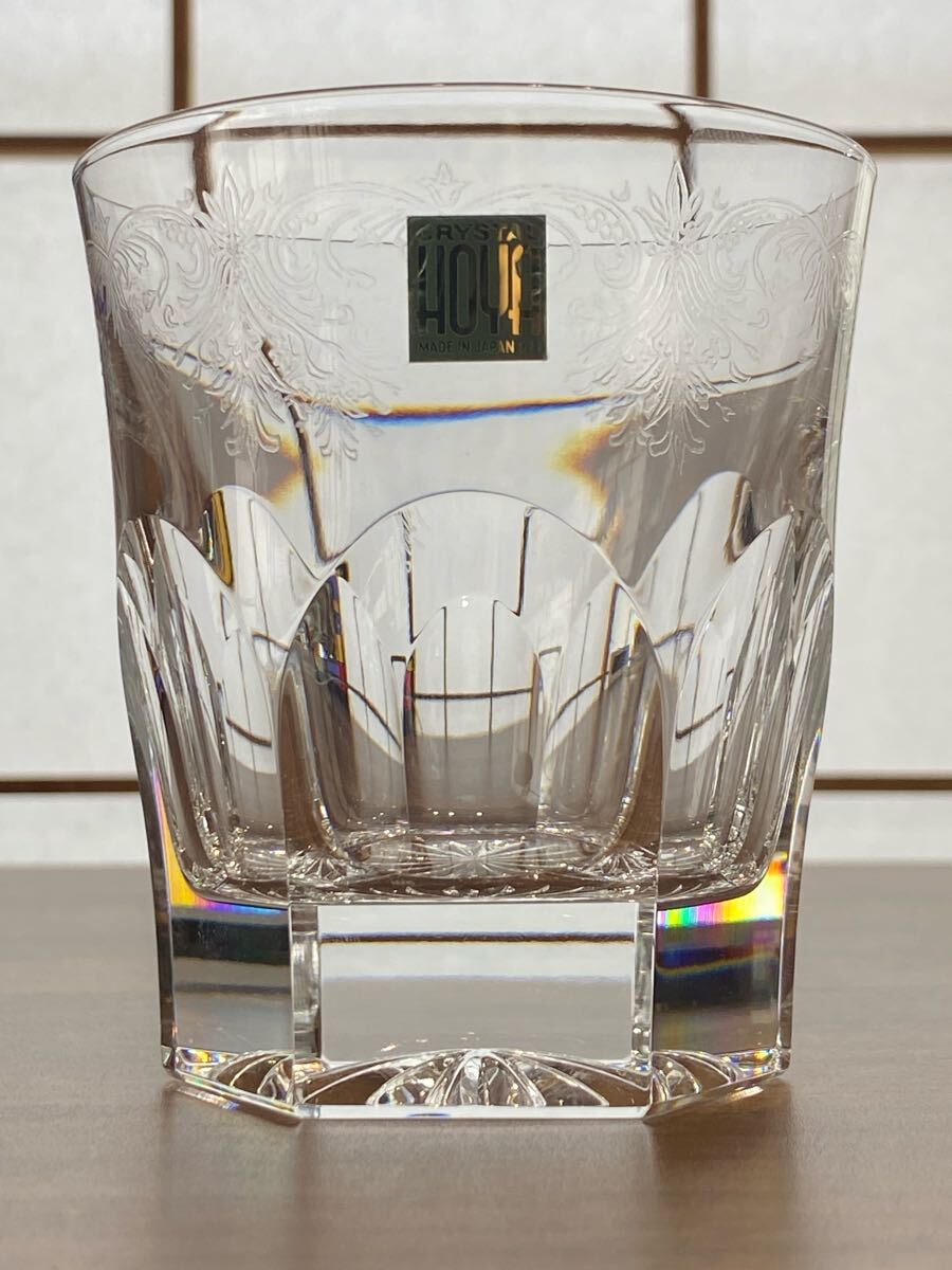 HOYA ホヤ 最高級クリスタルガラス アラベスク模様 6面Qカット ロックグラス 2客 未使用品!