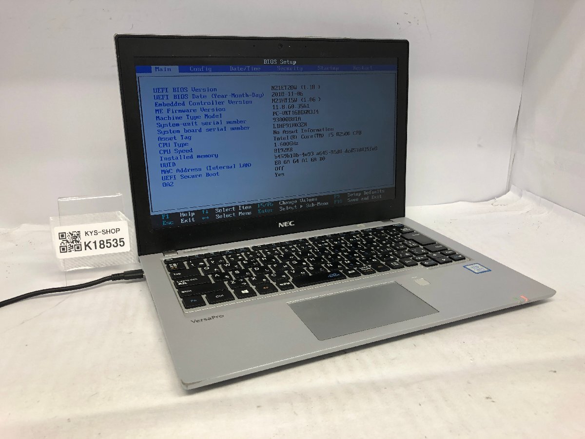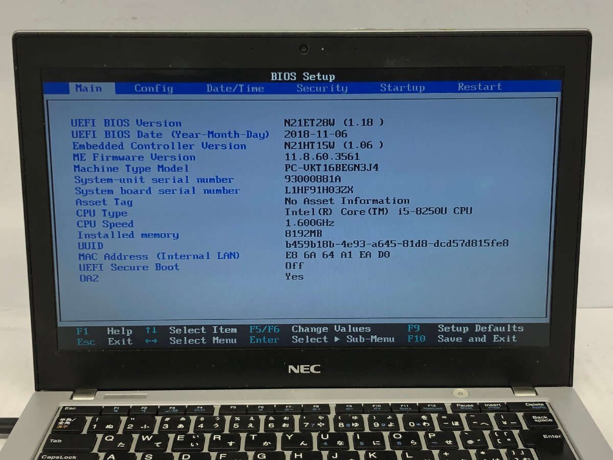 ジャンク/ NEC PC-VKT16BEGN3J4 Intel Core i5-8250U メモリ8.19GB ストレージ無し 【K18535】
