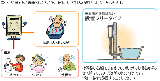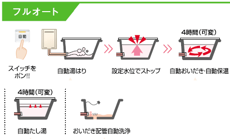 全自動で出来るフルオートタイプ。給湯器本体は設置フリータイプですので
