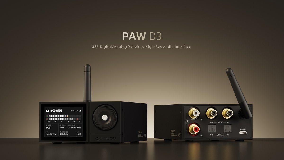 PAW D3 LTTP対応USB-DAC/DDC コンパクトでありながら多機能なオーディオデバイス PAW D3は、コンパクトでありながら、複数の機能を備えたUSB-DAC/DDCです。一般的な機能に加え、Lotoo独自のロスレスワイヤレス技術であるLTTPの送受信機能も備えており、Lotoo製品の可能性を広げることも可能です。主な特徴は以下の通りです。 ・対応フォーマット:PCM192kHz/24bit ・デジタル入力:USB-C,S/PDIF(同軸/光角),LTTP ・デジタル出力:S/PDIF(同軸/光角),LTTP ・アナログ出力:RCA ・DACチップ:AKM AK4493搭載 ・独立した高精度クロックIC・AK8142による低ジッタを実現 ・液晶ディスプレイで明瞭かつ直感的な操作が可能 ・音質を調整するプリセットEQ/ATE搭載 ・デスクトップ、モバイル、ワイヤレス環境とシームレスに連携 コンパクト・多機能でも音質に妥協なし 高性能AK4493EQ DACと緻密な電源&アナログ回路レイアウトにより、同DACチップのポテンシャルを最大限に引き出しています。また、AK8142によるPLL独立クロックシステムによって入出力系統のクロックを非同期化しています。入力由来のジッタ干渉を排除し、USB,S/PDIF,LTTPいずれの経路でもクリーンな信号出力を達成しています。デジタル・アナログ出力の双方で、空間表現・定位・微小信号の再生を飛躍的に向上させています。 多彩な入出力:USB-C,S/PDIF(同軸/光角),LTTP ・デジタル入力:USB-C(USB Audio Class 2.0準拠)S/PDIF(同軸/光角)LTTPワイヤレス受信 ・デジタル出力:S/PDIF(同軸/光角)LTTPワイヤレス送信 ・アナログ出力:RCA PAW D3は、LTTPを含めた豊富な入出力を備えており、従来の据え置きオーディオからPCオーディオ、さらには完全ワイヤレス環境まで一台でカバーします。LTTP送信機能を備えているため、PAW GT2などのLTTP対応製品の可能性を広げます。背面パネルに集約された端子群は、機器間の再配線を最小限に抑え、設置もスマートです。 LTTP(Lotoo Teleport Protocol)ロスレスワイヤレス ・最大96 kHz/24 bit ・48 kHz/24 bitロスレス ・アダプティブ帯域制御&高精度クロック同期 ・回転式アンテナで受信最適化 映像視聴やゲーム時の低レイテンシー性能も確保しており、ワイヤレス化で失われがちな音質と同期ズレを同時に解決します。 Lotoo PAW D3は、コンパクトボディにハイエンド機譲りのオーディオテクノロジーを凝縮し、これまでにない自由度でリスニングスタイルを拡張します。 製品の仕様 対応フォーマット(USB,S/PDIF):PCM192kHz/24bit 対応フォーマット(LTTP):PCM96kHz/24bit,48kHz/24bitロスレス デジタル入力:USB-C,S/PDIF(同軸/光角),LTTP デジタル出力:S/PDIF(同軸/光角),LTTP アナログ出力:RCA アナログ出力レベル:2Vrms サイズ:88 mm x 42 mm x 110 mm 重量:333g 電源:USB 5V/1A(バスパワー) 対応OS: Windows 10 Creators Update(1703)以降 Mac OS 10.6.8以降 iOS、Android、LTOS ※USB Audio Class 2.0ドライバー搭載OSにて動作 仕様は予告なく変更する場合がございます。 |