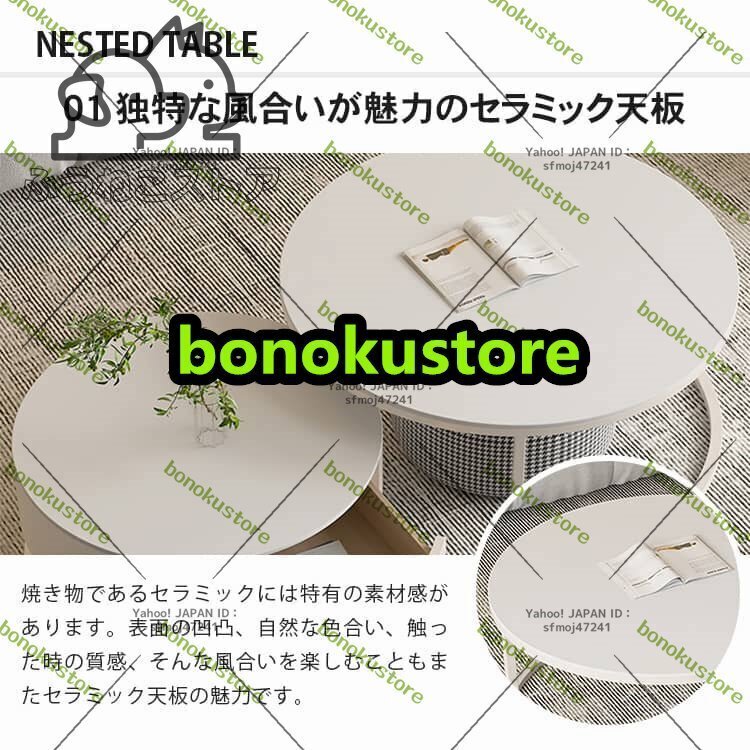 商品説明 商品説明 商品説明 たくさんの展出品の中に弊店の製品をご覧頂き、ありがとうございます。【商品詳細】状態:新品未使用■材質 セラミック、ガラス、スチール、突板、ウレタン、綿麻■サイズ 大テーブル:直径70/80×高さ45cm小テーブル:直径50/60×高さ40cmスツール