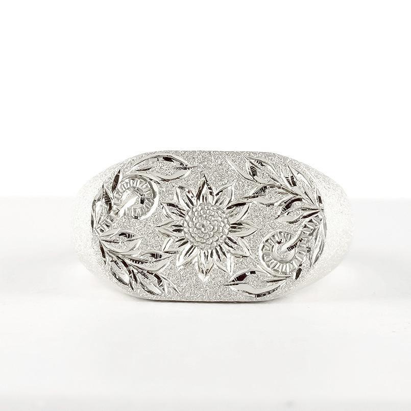 商品コード:210527101p100【配送】・発送は3週間ほどです【おすすめポイント】キラキラと輝くテクスチャと彫りの調和が美しい印台風ボリュームリングヒマワリの明るくポジティブな印象が爽やかさと個性をアピール頑張っている自分へのご褒美や、大切な人へのプレゼントにおススメ【商品詳細】・材質:プラチナ900(品質を保証するpt900の刻印)・大きさ:リング最大幅 約 10.5ミリ【リングサイズ】・10-16号までサービス それ以上のサイズは別途お値段がプラスされます。・0.5号刻みも対応しておりますので、ご希望の場合はご要望欄にご記載ください。誕生日 記念日 プレゼント ジュエリー リング 指輪 幅広 印台 シグネットリング ひまわり 向日葵 花 彫り ピンキーリング 地金 ブライダルリング エンゲージリング 婚約指輪 マリッジ 結婚 婚約 ウェディング プロポーズ 結婚祝い ジェンダーレス ハンドメイドジュエリー ギフト プレゼント 贈り物 フリースタイル ニッケルフリー ユニセックス LGBTQ 男女兼用 ジェンダーフルイド バディジュエリー 小さいサイズ 大きいサイズ 対応 福袋 30代 40代 50代