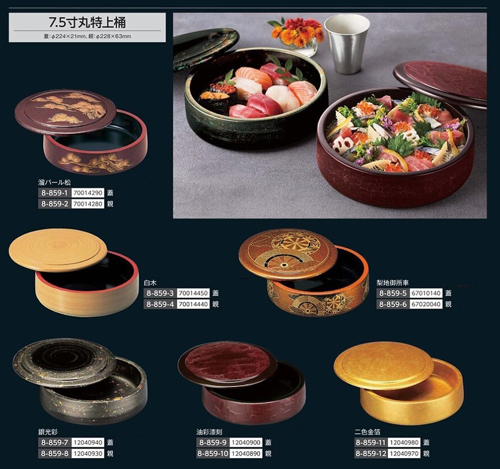 ☆業務用漆器7.5寸丸特上寿司桶梨地御所車(約径228X63mm)30個