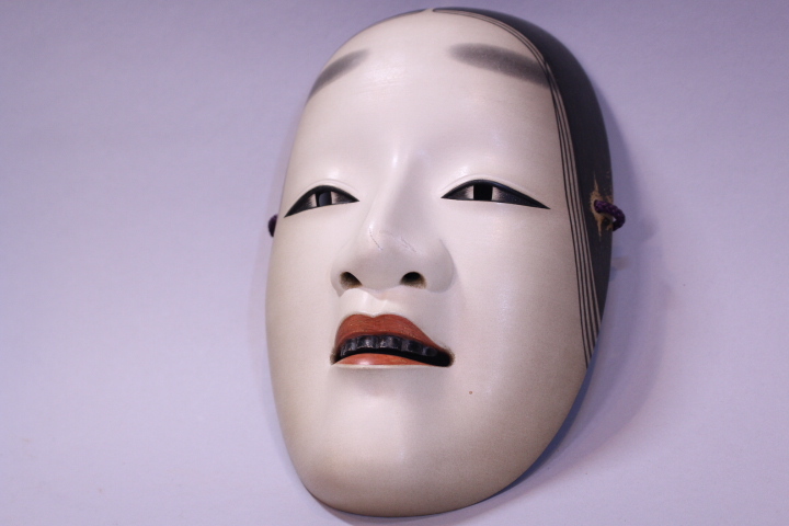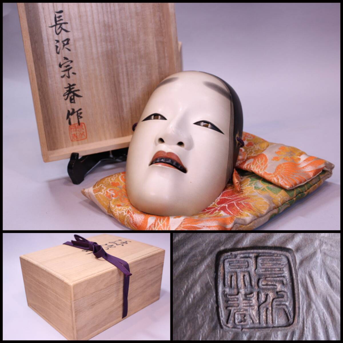 v-6819 長沢宗春作「 孫次郎 」 能面 木彫 小面 共箱 |