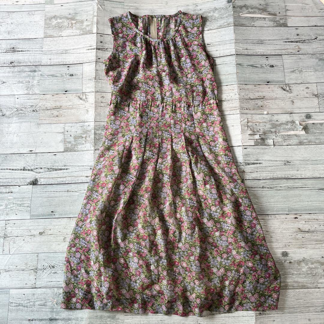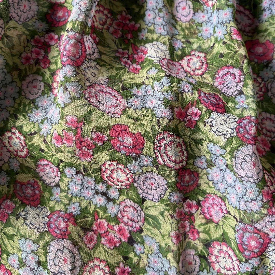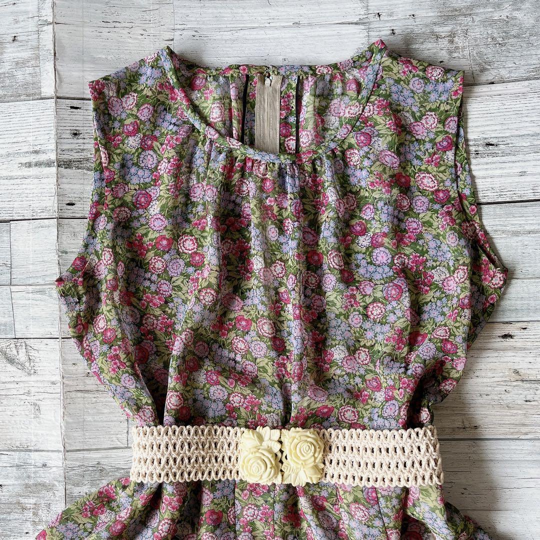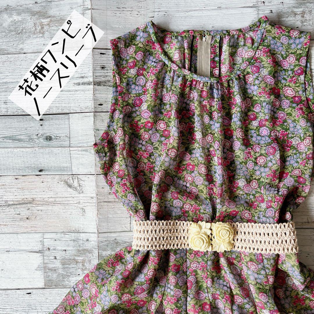 昭和レトロボタニカル柄ノースリーブロングワンピース透け素材グリーンU1