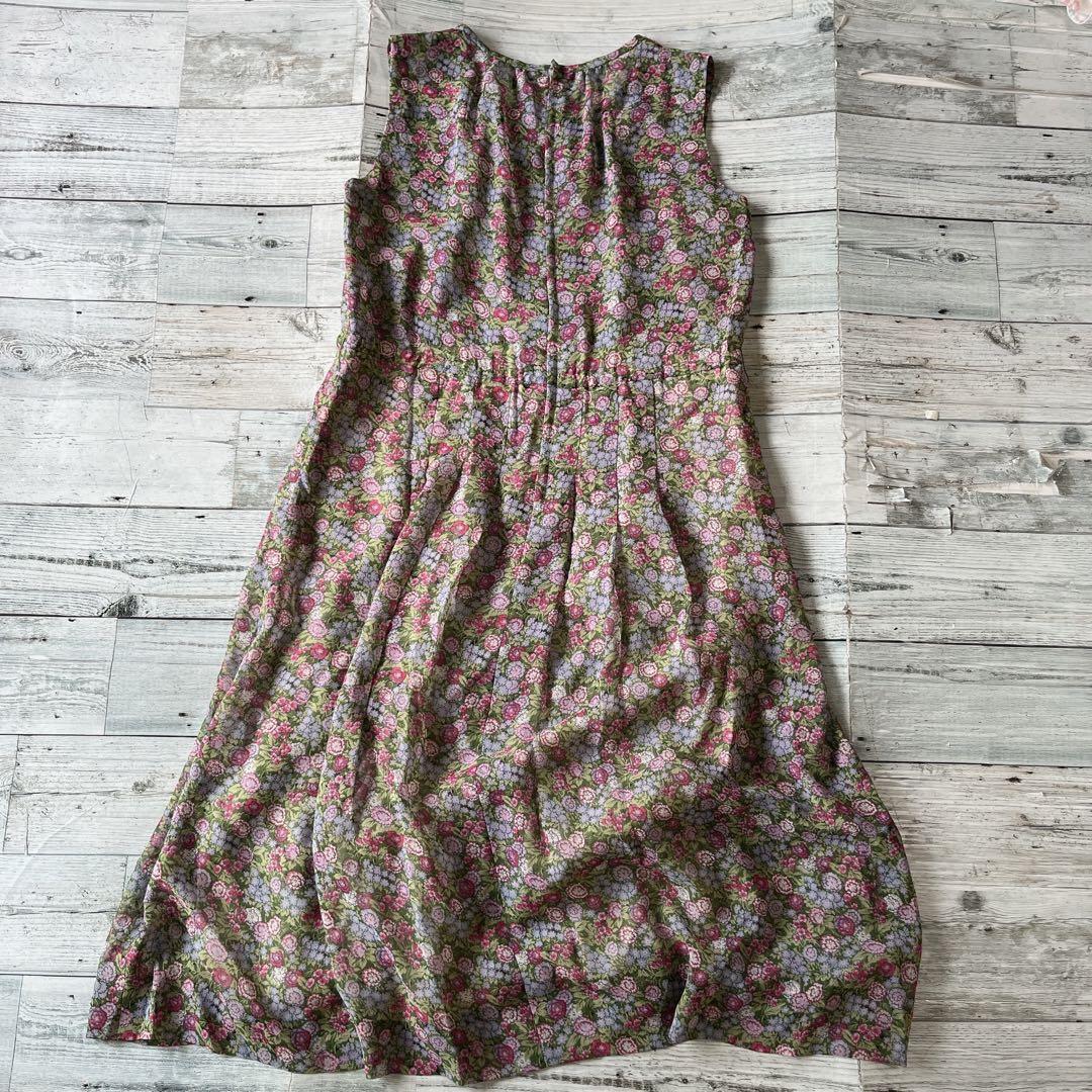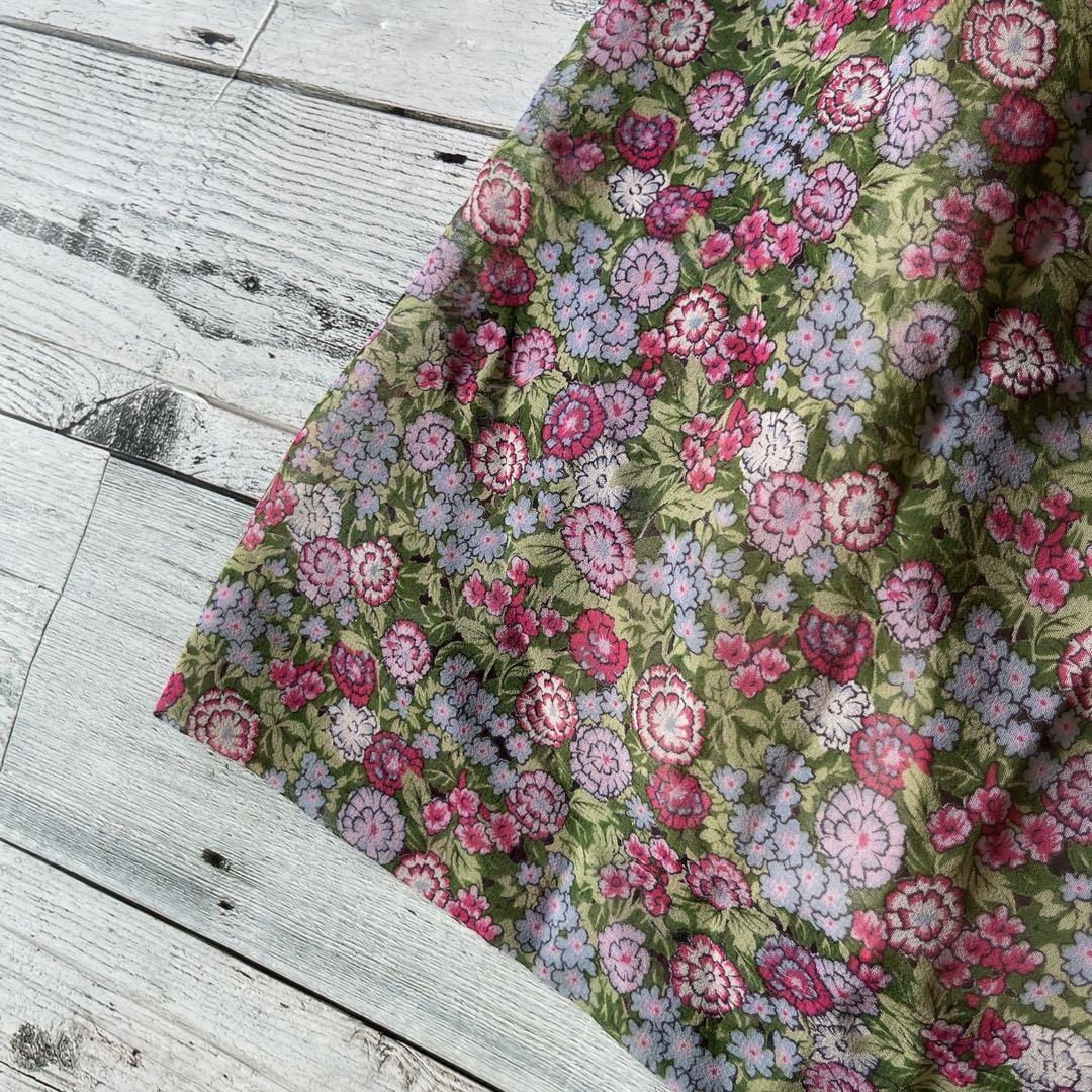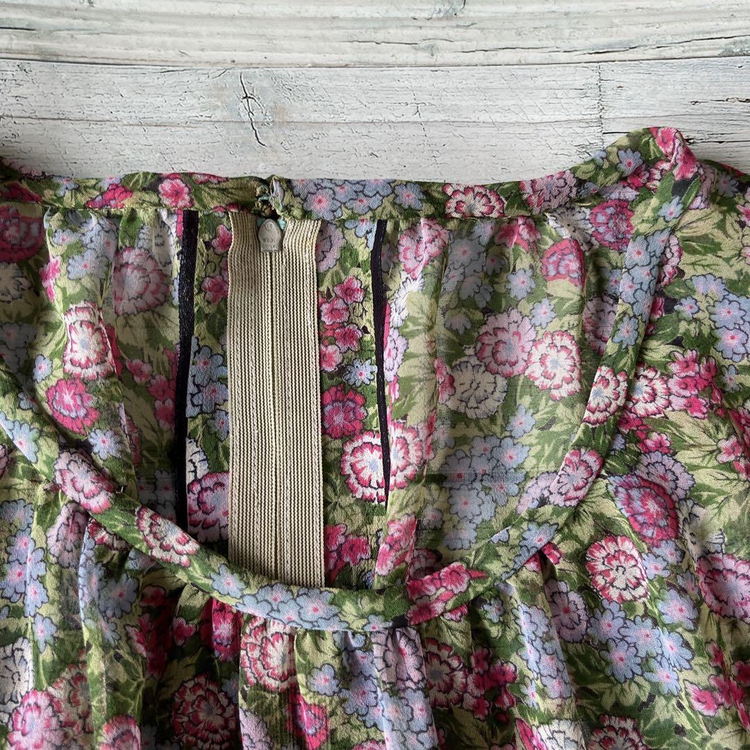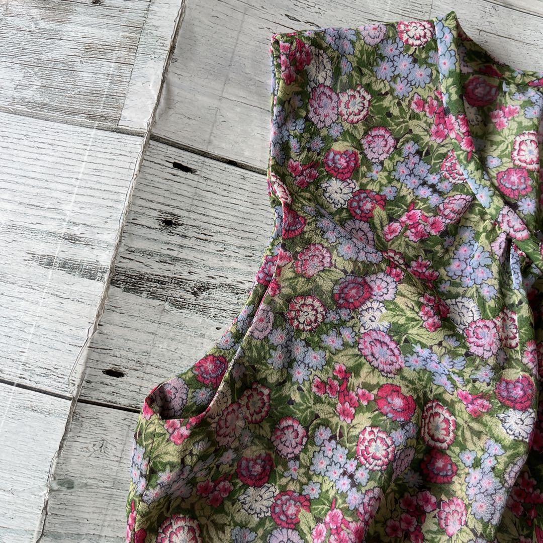 昭和レトロボタニカル柄ノースリーブロングワンピース透け素材グリーンU1