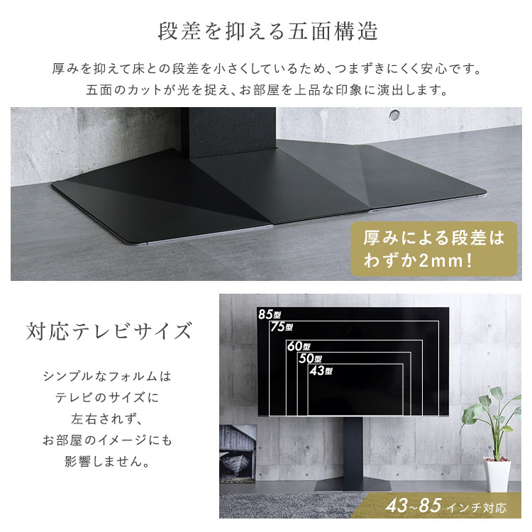 壁寄せ五面体テレビスタンド  Criste-クリスト-  専用サウンドバー棚板セット ブラック