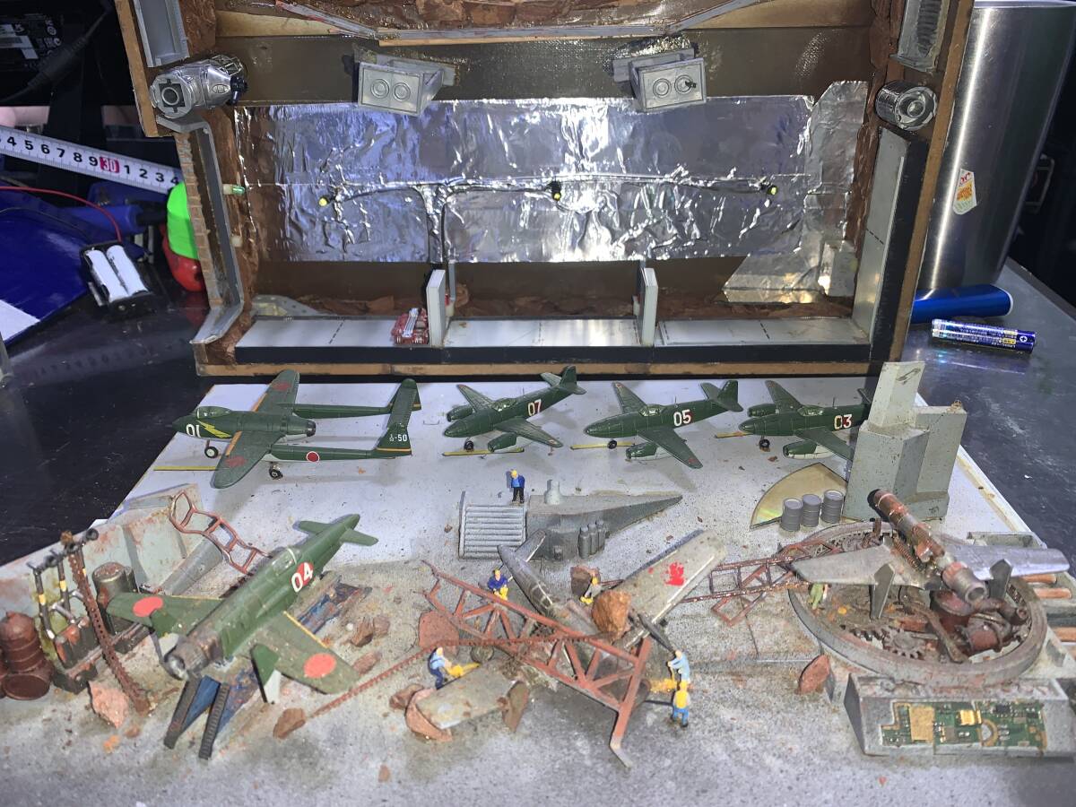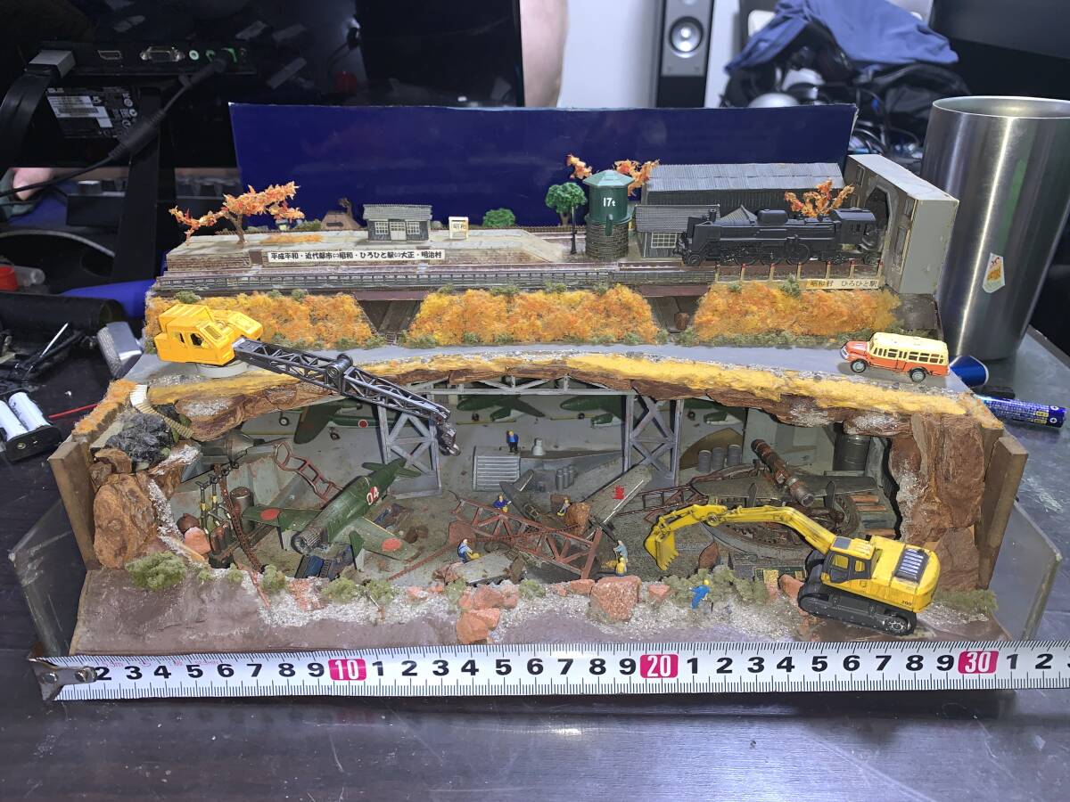 日本軍地下秘密研究所・秘密基地・格納庫 昭和 自作ジオラマ ※ジャンク扱いです。