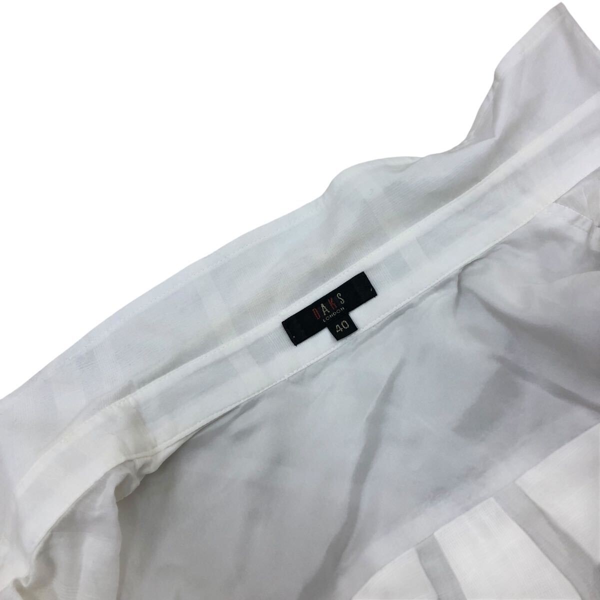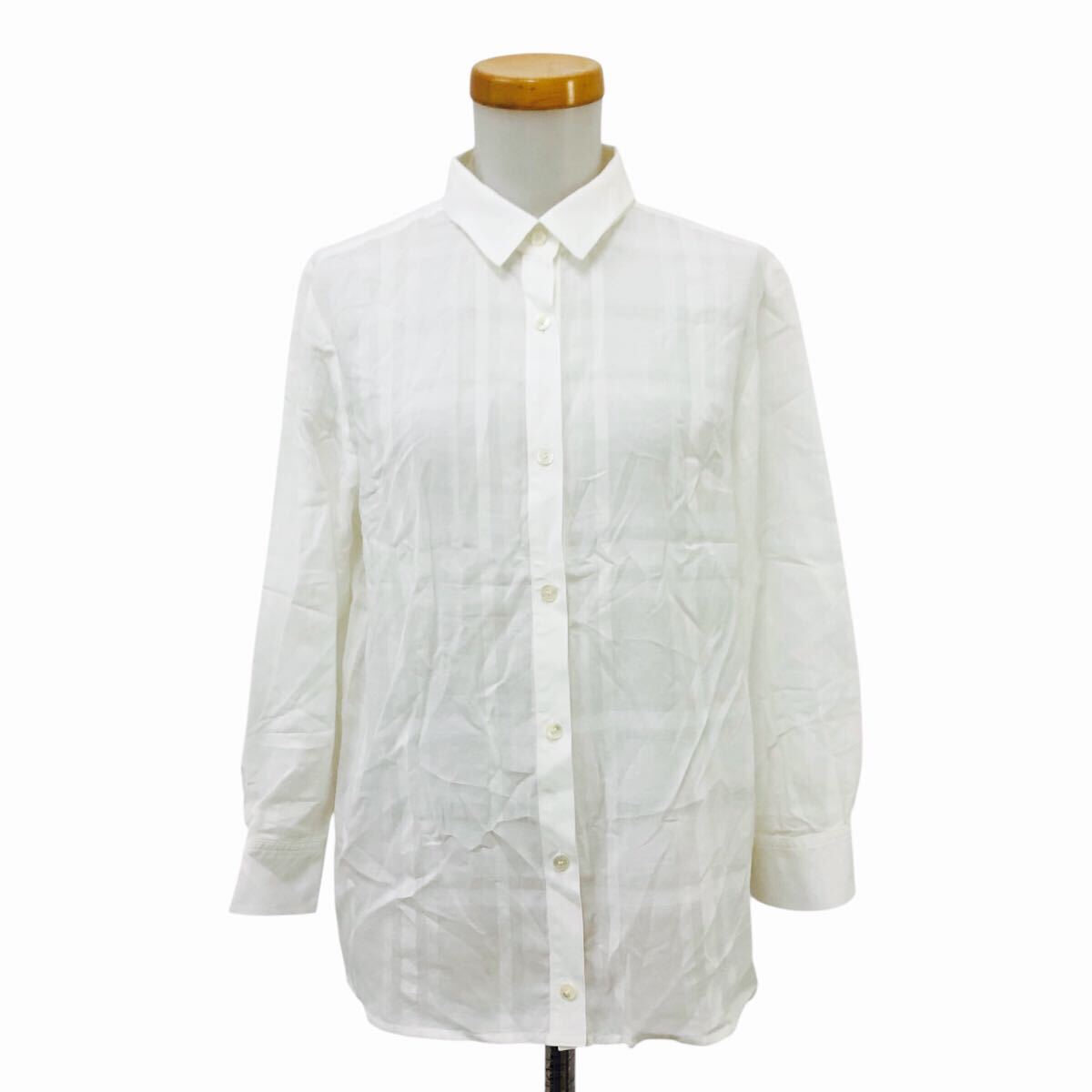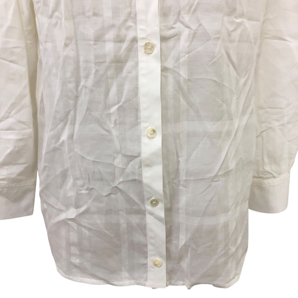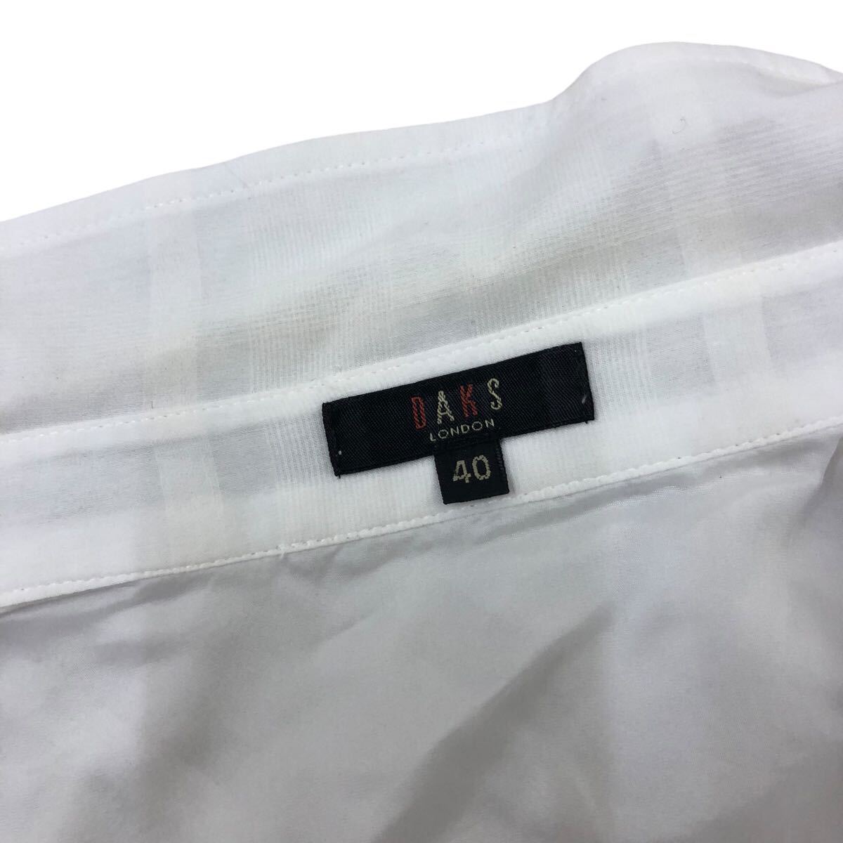 Nm314-26 DAKS ダックス シャドーチェック チェック柄 七分袖 コットン ブラウス シャツ トップス ホワイト 白 レディース 40 日本製