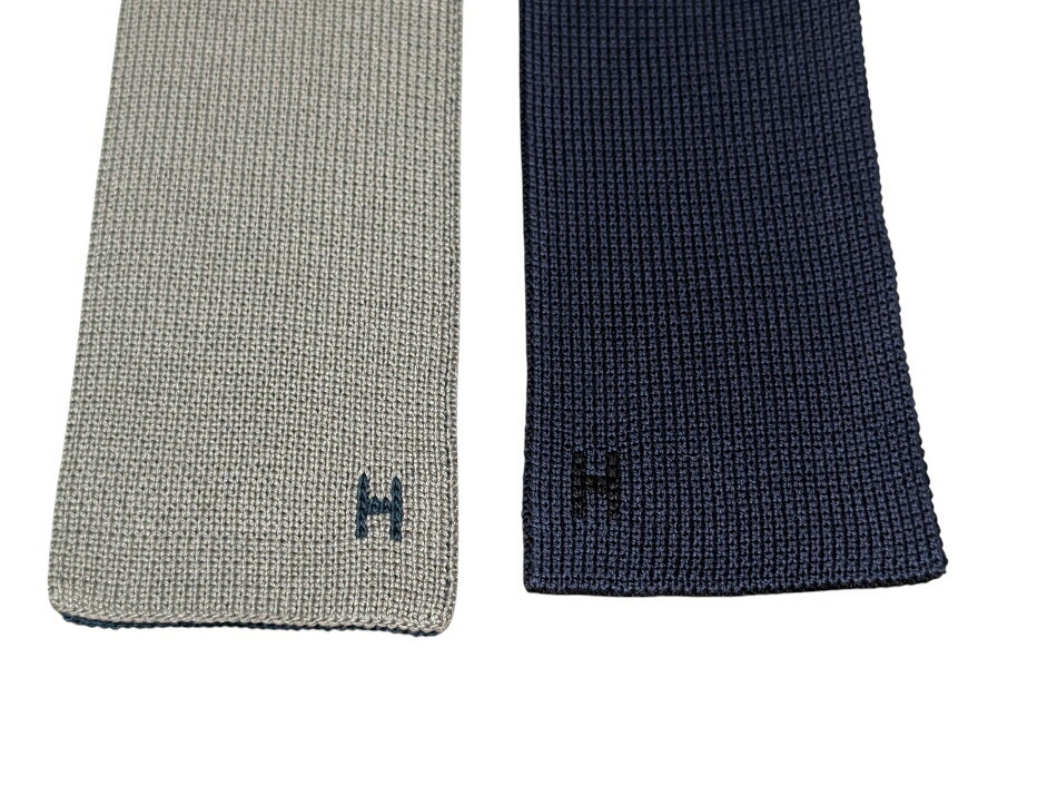 新品同様 エルメス ニットタイ リバーシブル ネクタイ キャトル・タン 4カラー 濃紺 グレー ネイビー HERMES 【中古】
