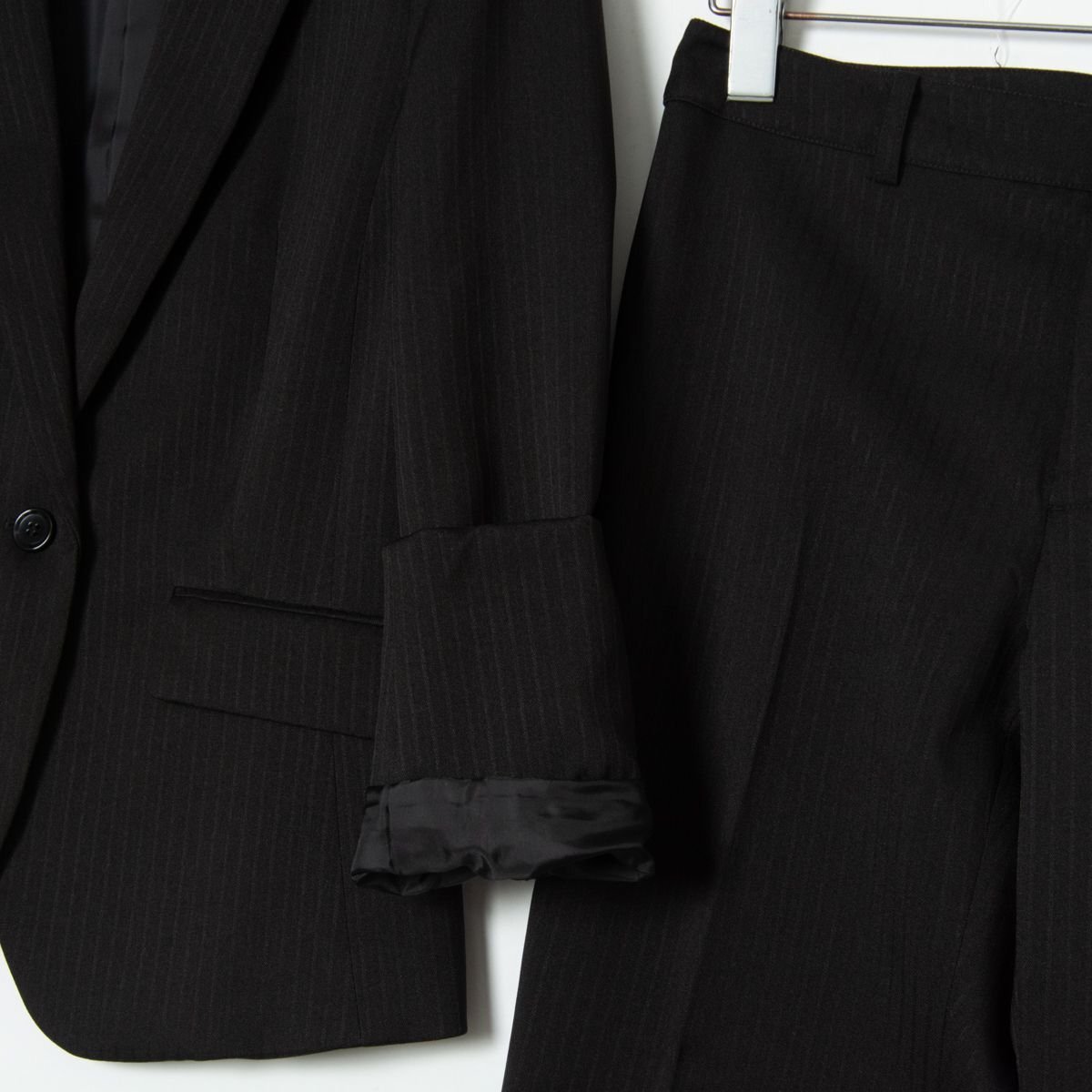 サイズ | 表記サイズ:9 【ジャケット】 肩幅:37cm 身幅:43cm 着丈:55cm 袖丈:59cm 【パンツ】 ウエスト:72cm ヒップ:88cm 股上:22cm わたり:28cm 股下:77cm すそ幅:20cm |