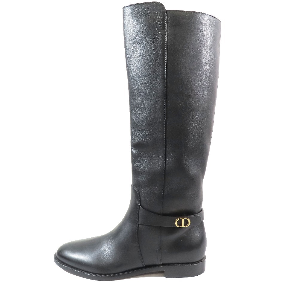 未使用 CHRISTIAN DIOR クリスチャンディオール EMPREINTE アンプラント ロングブーツ CDロゴベルト レザー シューズ 黒 36/23cm