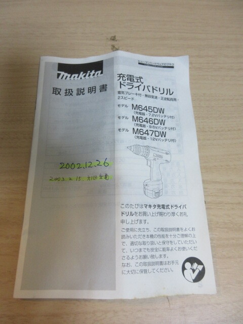 。 ★商品説明★ ※恐れ入りますが必ず商品説明と送料の説明文など 最後まで必ずよくお読みいただき落札お願いします。※ 携帯からだけでは商品画像全てご覧になれない 物もありますので一度パソコンからご覧頂いたくことをお勧めします。 商品詳細 E344★マキタ■makita■充電式ドライバドリル■M646D■充電器付■バッテリー付■中古品 動作OKです。 充電器、バッテリー(1個付)動作OK。 正転、逆転OK。クラッチOK。 付属品→取扱説明書、ビット、外箱あり。 ビットは、おまけなのでノークレーム・ノーリターンです。 ※注意※充電池は、寿命どのくらいか測れないので消耗品・保証なしです。 中古品ですので画像に写らない気にならない程度の小傷などあります。 状態は画像でご確認ください神経質な方は落札しないでください。 以上をご理解いただける方のみご入札ください。 ★商品の保証★ ※当方のミスによる商品の動作不良・説明文・画像と大きく違うなど ありましたら3日以内(商品到着よりより72時間)返品・返金対応します。 ビットは、おまけなのでノークレーム・ノーリターンです。 ※注意※充電池は、寿命どのくらいか測れないので消耗品・保証なしです。 ※中古品ですので傷などあります。状態は画像・現状品で ご判断ご確認ください神経質な方は落札しないでください 商品は、到着後3日以内に動作確認をしていただくことをおすすめします。当方では3日過ぎた以降の 返品・保証は、中古品は、状態が色々で対応しきれませんのでよろしくお願いします。 電動工具の場合初期動作不良のみの返品保証になりますご了承ください。 以上をご理解いただける方のみご入札ください。 ★送料★ ※こちらの商品は、梱包後【100cmサイズ】25kg以内に梱包されております※ 送料は、元払いとさせていただきます。 落札後落札者様での運送会社指定・着払いは,出来ませんのでご遠慮ください 送料詳細↓(商品落札後下記金額を連絡させていただきます。ご確認の上ご落札いただきますようお願いします。) (2024-7月価格値上がりのため変更になりました。よろしくお願いいたします。)