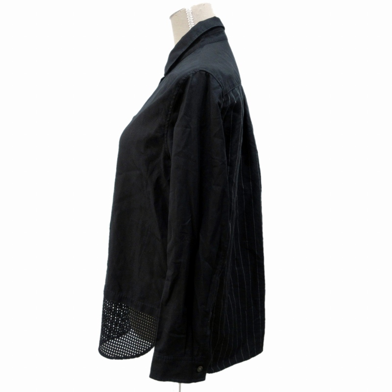 ケーティー キヨコ タカセ K.T KIYOKO TAKASE 美品 チュニックシャツ 切替 ストライプ メッシュ プルオーバー 長袖 11 約L 黒 ブラック ■MET1 0720 レディース