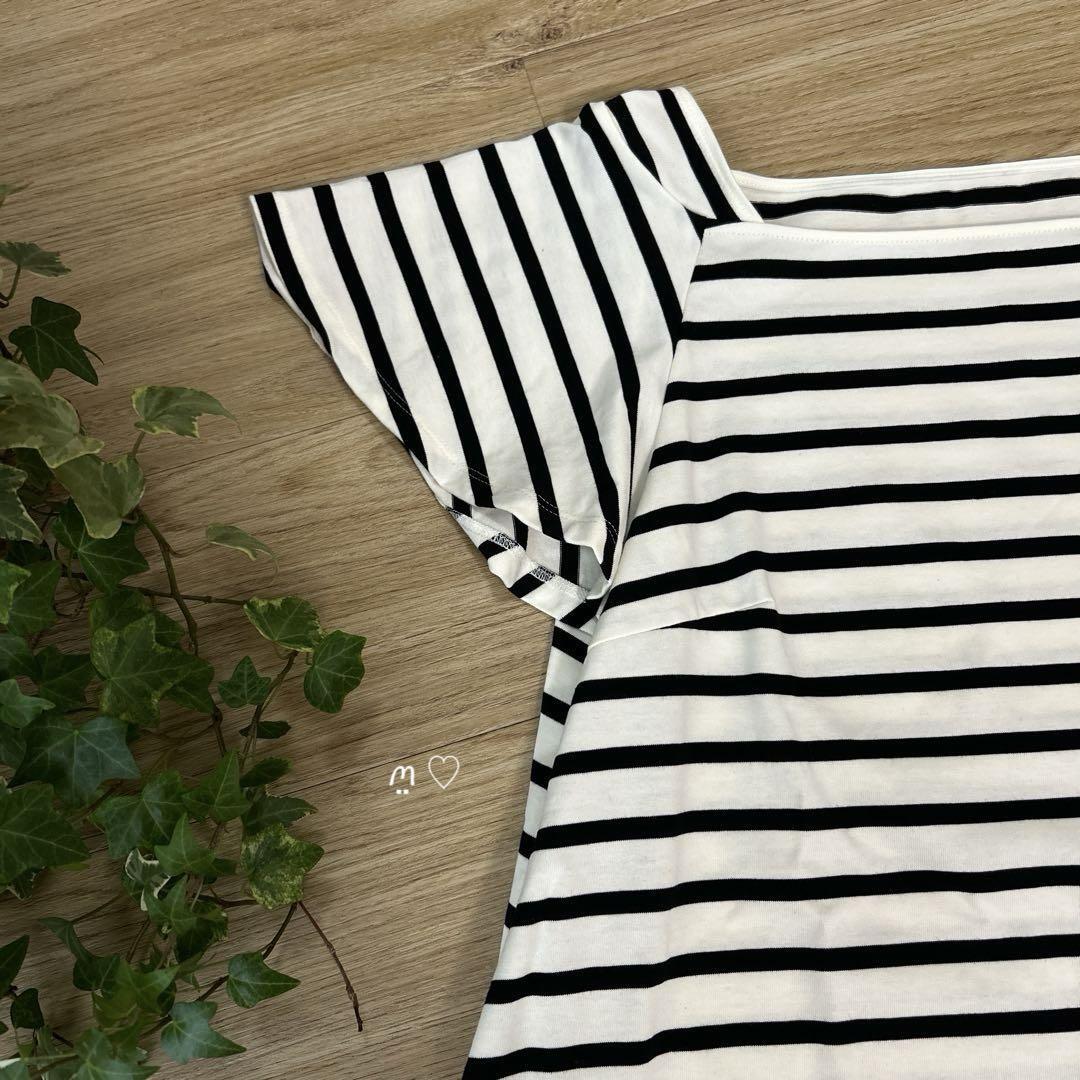 軽やかなフレアスリーブが目を引く、マリンテイスト漂う上品なボーダートップス。