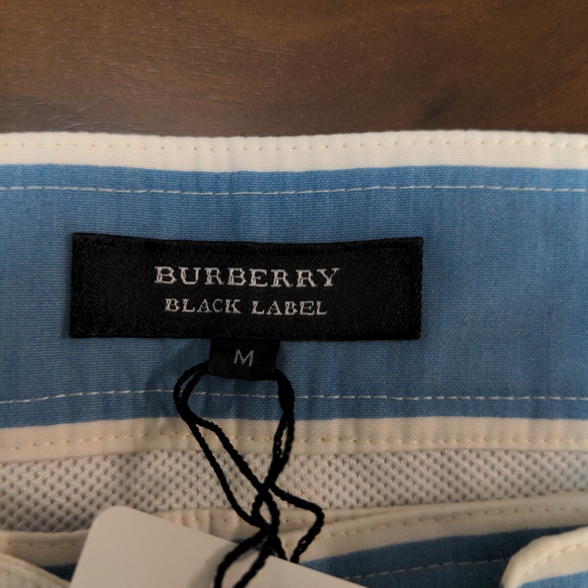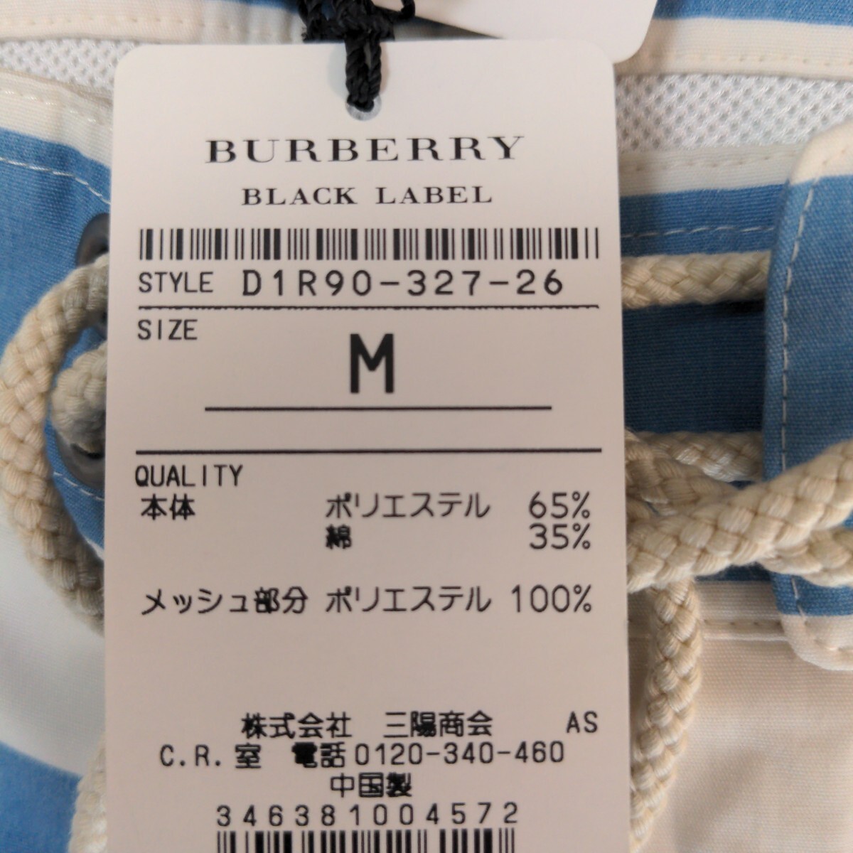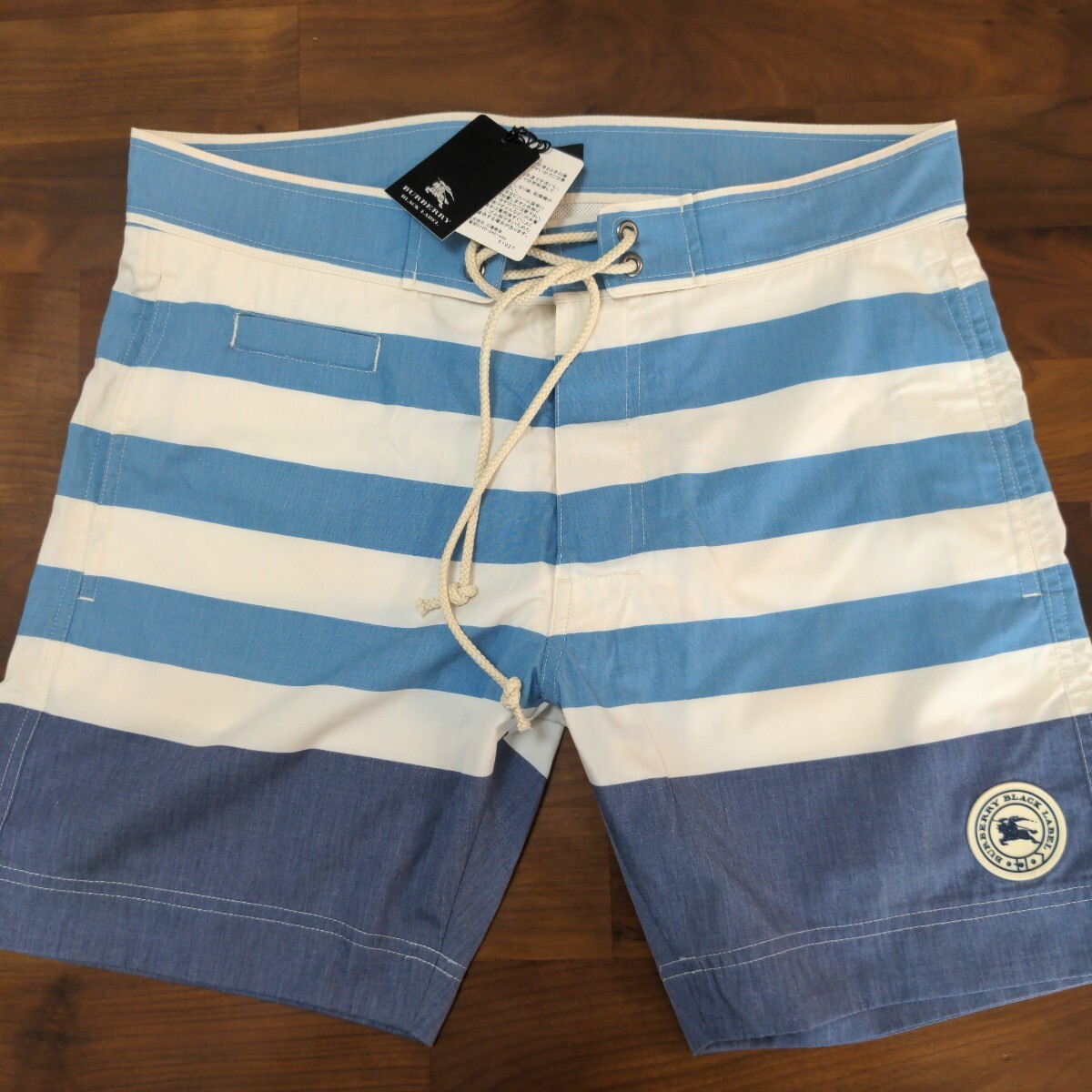 ★2015年にブランドとしての生産を終了したバーバリーブラックレーベル、シンプルなストライプ柄で仕上げたサーフパンツでポリエステル素材の程好いフィット感のある商品です。左膝部分に施したブラックレーベルロゴにてブランドアピール、Мサイズは現品限りの新品未使用商品となります。