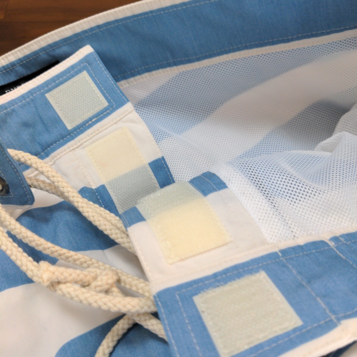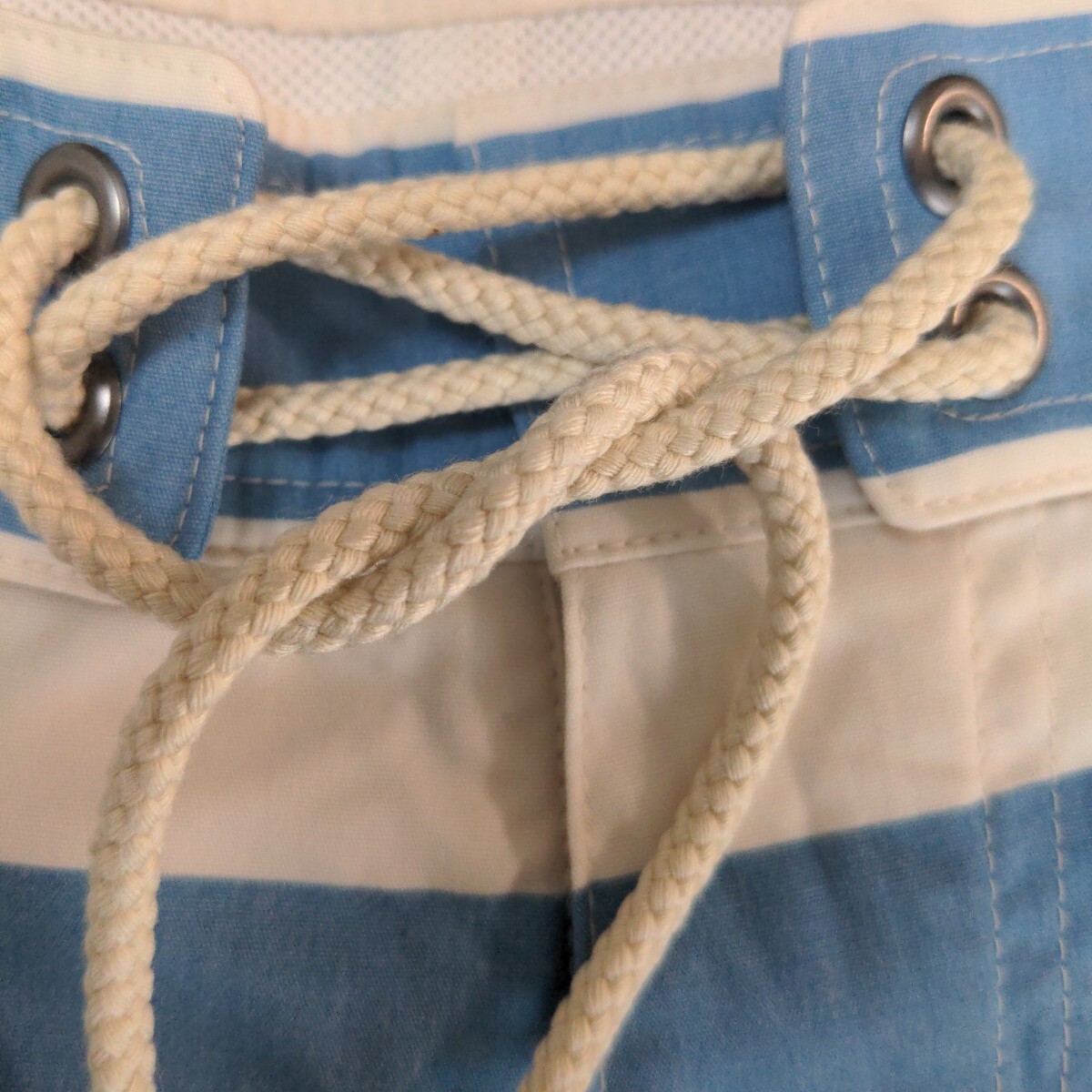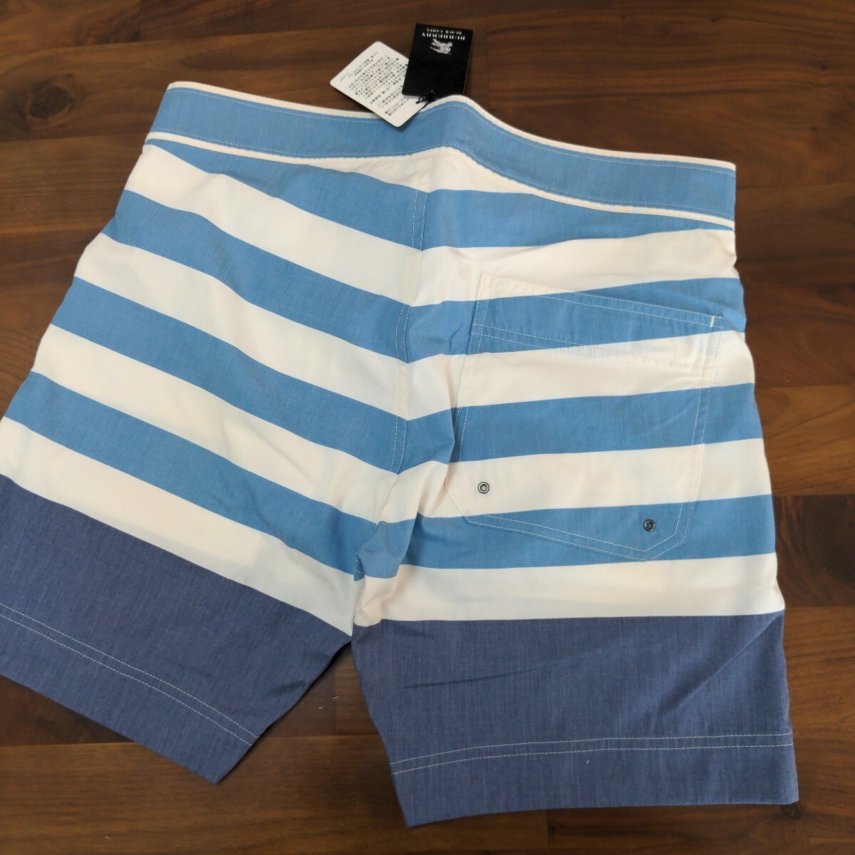 ★2015年にブランドとしての生産を終了したバーバリーブラックレーベル、シンプルなストライプ柄で仕上げたサーフパンツでポリエステル素材の程好いフィット感のある商品です。左膝部分に施したブラックレーベルロゴにてブランドアピール、Мサイズは現品限りの新品未使用商品となります。