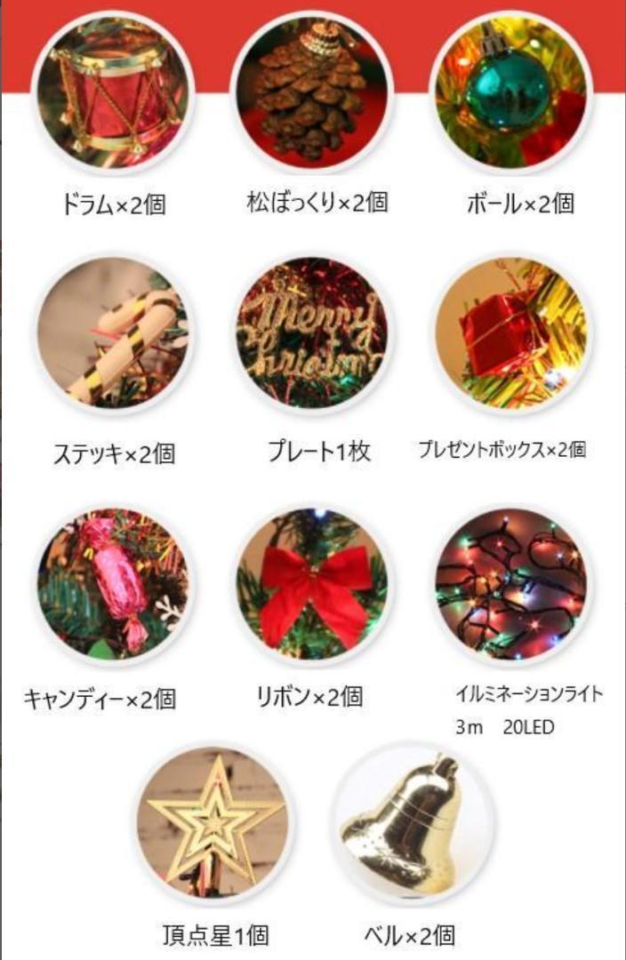 定番の赤いリボンにカラフルボールやキラキラのボール、プレゼントボックスなど、色々な種類のオーナメント計20個が付いたお得なツリーです♪