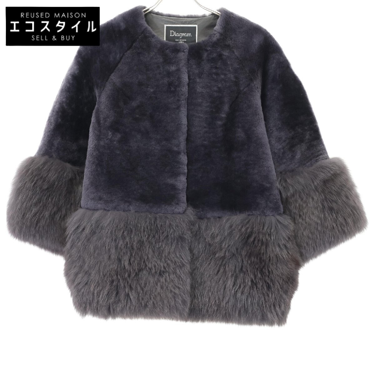 Diagram ダイアグラム 3730 4063-0 ネイビー ラム×フォックスファー ショートコート ネイビー 34 コート ポリエステル レディース 中古