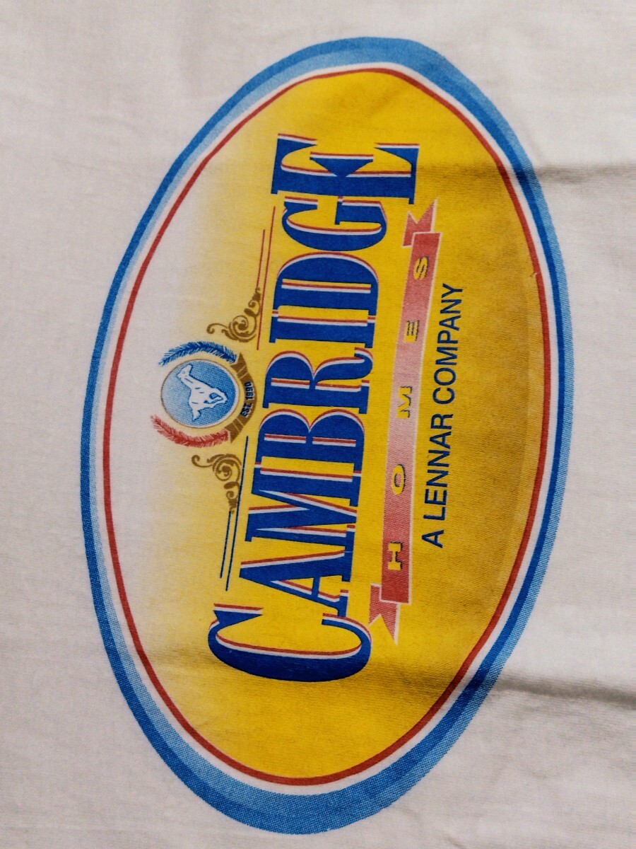 ホワイトのHanes製Tシャツ、CAMBRIDGEデザイン。