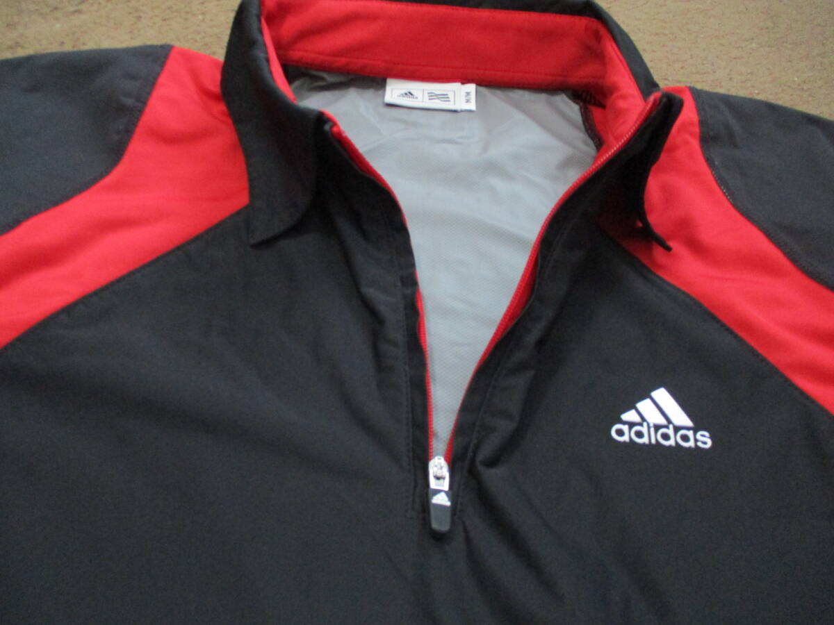 テーラーメイド製、アディダス・ブランドの、機能的でスタイリッシュなハーフジップ・ジャケットでMサイズの表記“